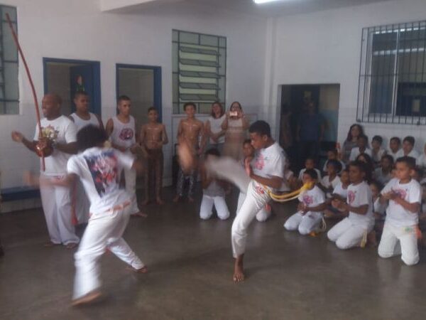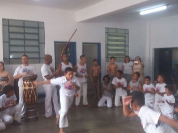 A Equipe Administrativa e Direção da Escola Municipal João de Camargo – localizada na rua Ricardo Machado, 633 -Vasco da Gama-RJ acolheu-nos muito bem, ficaram gratos pela apresentação de Capoeira e parabenizou-nos pelo trabalho realizado com as crianças e adolescentes. Alguns, são alunos da Escola no contra turno da Unidade, o espetáculo ocorreu em dois turnos: manhã e tarde.