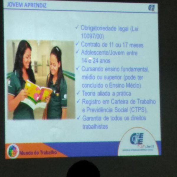 - CIEE – Centro de Integração Empresa-Escola – Passou 6h na Unidade turnos: manhã 3h /tarde 3h, ministrou debates e dinâmicas com usuários frente ao mercado de trabalho, a assessoria foi para os adolescentes de 13 a 15 anos, com a assessora Roberta Peixoto Penha . Intensificou o Projeto Papo Cabeça que é ministrado mensalmente sob responsabilidade do Serviço Social da Unidade.
