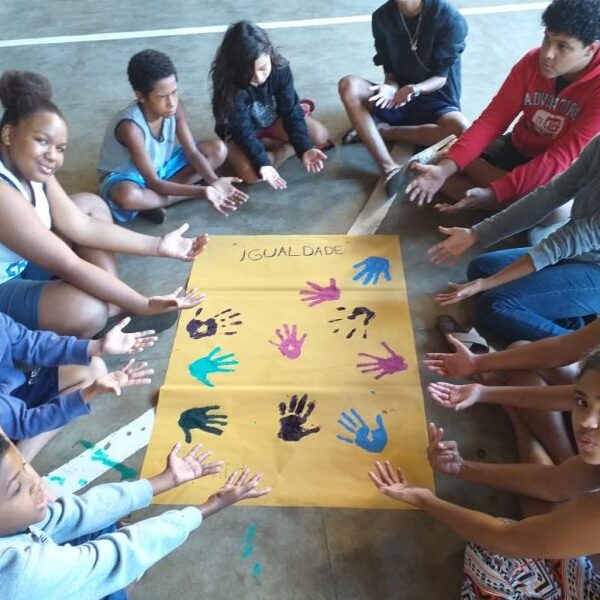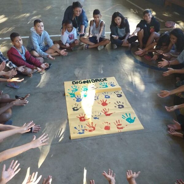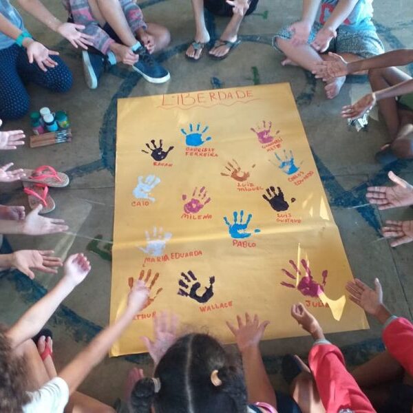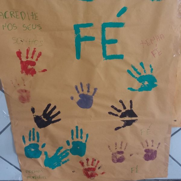 Irmã Alberlandia Oliveira Barros – Coordenadora da Oficina da Vida abordou com amor o despertar da vida de cada um, afixaram suas mãos nos cartazes de seus grupos referenciais. Os nomes foram escolhidos em virtude do tema da Campanha da Fraternidade deste ano. Cada um tatuou a mão no cartaz com seu educador referencial, e desde exercício fortaleceu os vínculo entre os membros.