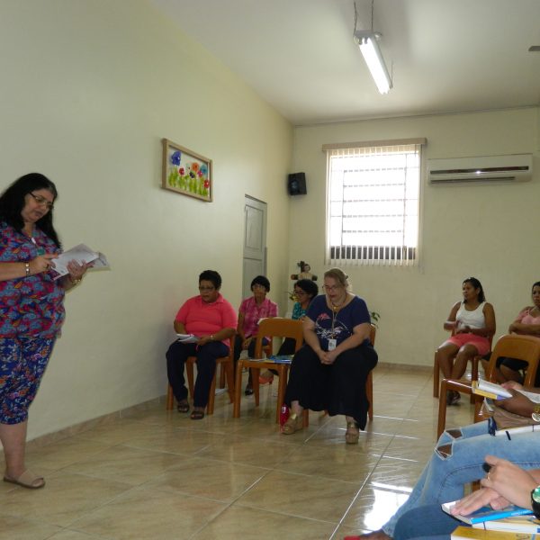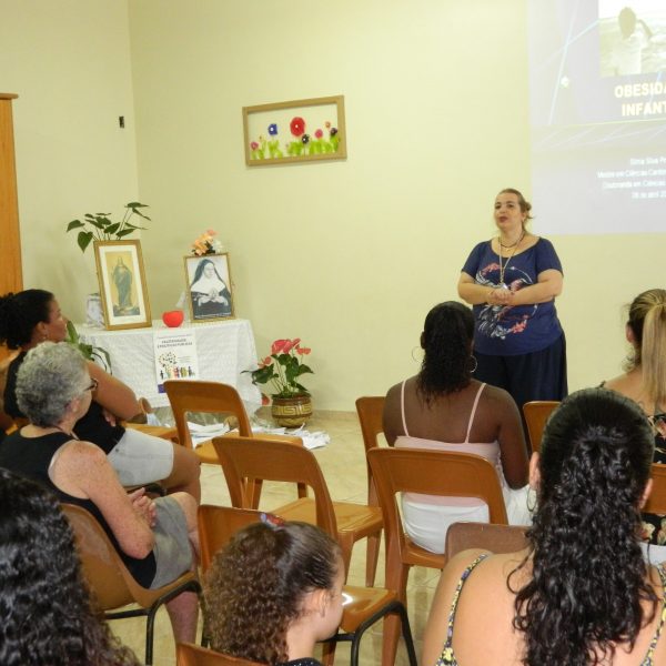 Irmã Ofélia Dias Bernardino — Tesoureira acolheu as irmãs que serão companheiras na missão que a Bem — Aventurada Bárbara deixou. E Pontuou o trabalho que Dra. Sônia Silva Prado – Cordiologista e palestrante do dia conduzirá na Unidade – Estudo de caso com os usuários. “Obesidade Infantil”