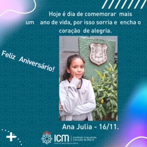 Querida Ana Júlia, a vida é cheia de aprendizado, sorria, brilhe e seja feliz. Parabéns,