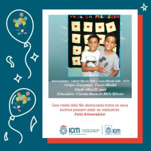 Hoje é festa em dose dupla, os gêmeos Gabriel e Lucas fazem aniversário, e juntos estamos em sintonia. Felicidades meninos Super Poderosos. Todos nós da Unidade celebramos com vocês a graça da vida. Que o dia de hoje tenha cheirinho de chocolate com docinhos e brigadeiros! Amamos vocês… Vivaaaaaaaaaaaa….Feliz Aniversário!