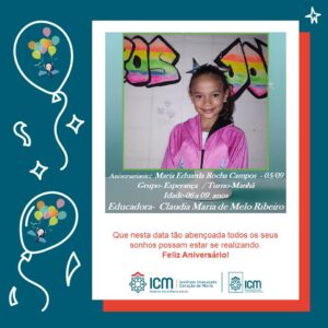 A vida é para viver e ser feliz, por isso, hoje a Unidade e seus componentes festejam com a família de Maria Eduarda sua vida e beleza! Felicidades Princesa, que seu dia seja recheado de amor com cobertura de abraços! Feliz Aniversário!