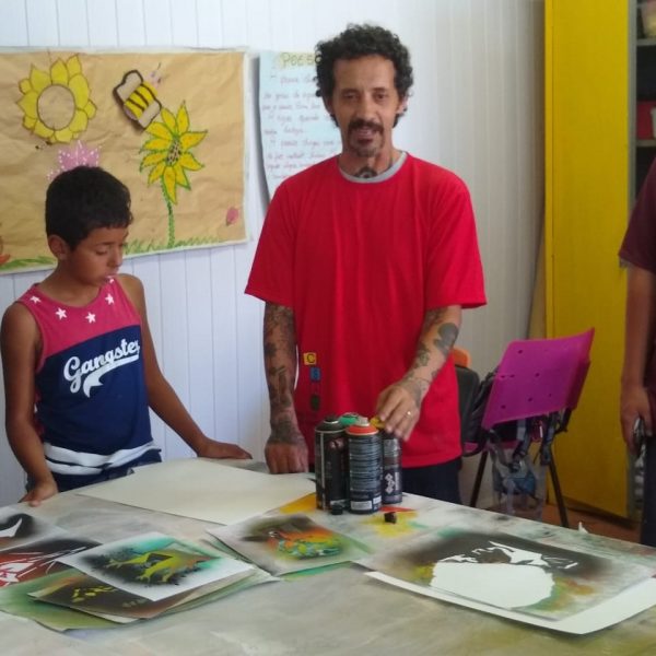 Jovens participaram da Oficina de Grafite.