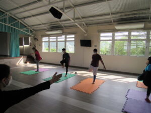 A turma das Oficinas Culturais tem como hábito sempre antes de qualquer prática circense alongar e fortalecer a musculatura, assim podendo melhorar a qualidade do movimento e também prevenir lesões musculares.