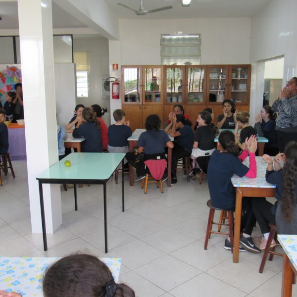 Como de costume reunimos todos no refeitório para prestigiar os educandos que fizeram aniversário neste mês, as crianças e adolescentes tiveram um lanche especial com cachorro-quente e todos juntos comemoramos este momento de alegria!