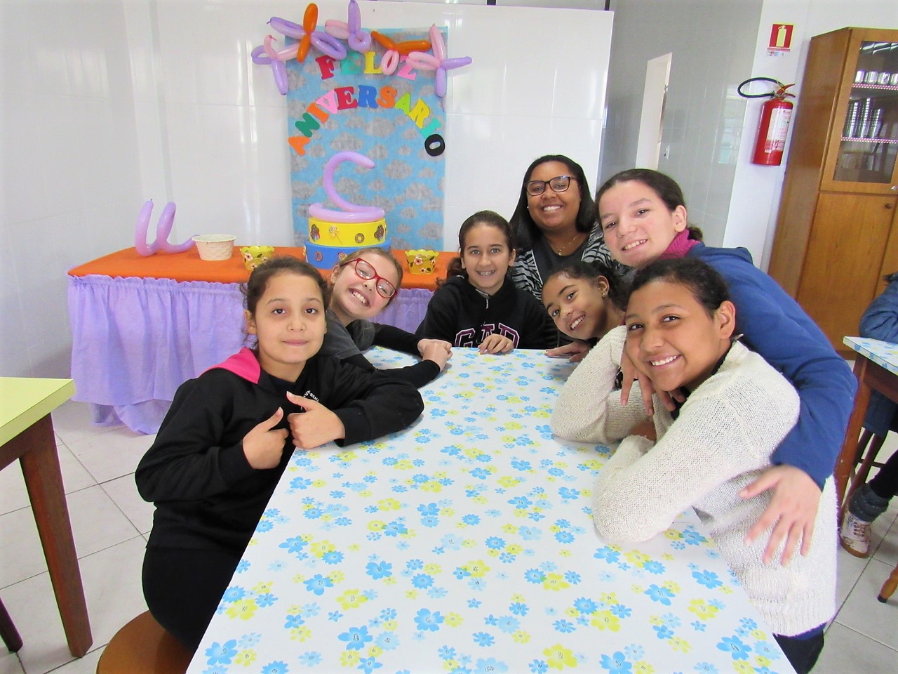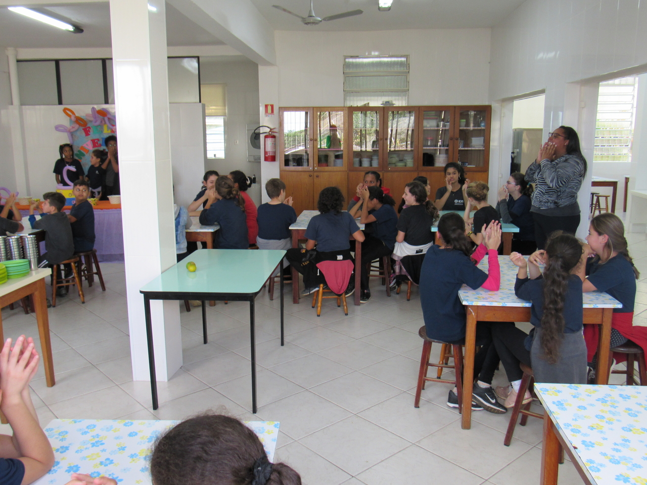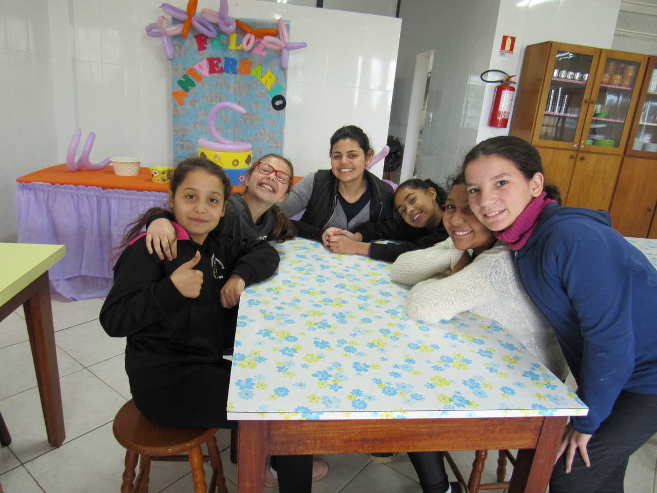 Como de costume reunimos todos no refeitório para prestigiar os educandos que fizeram aniversário neste mês, as crianças e adolescentes tiveram um lanche especial com cachorro-quente e todos juntos comemoramos este momento de alegria!