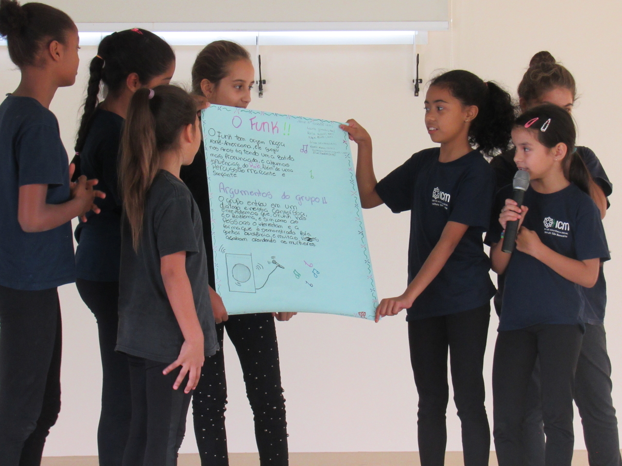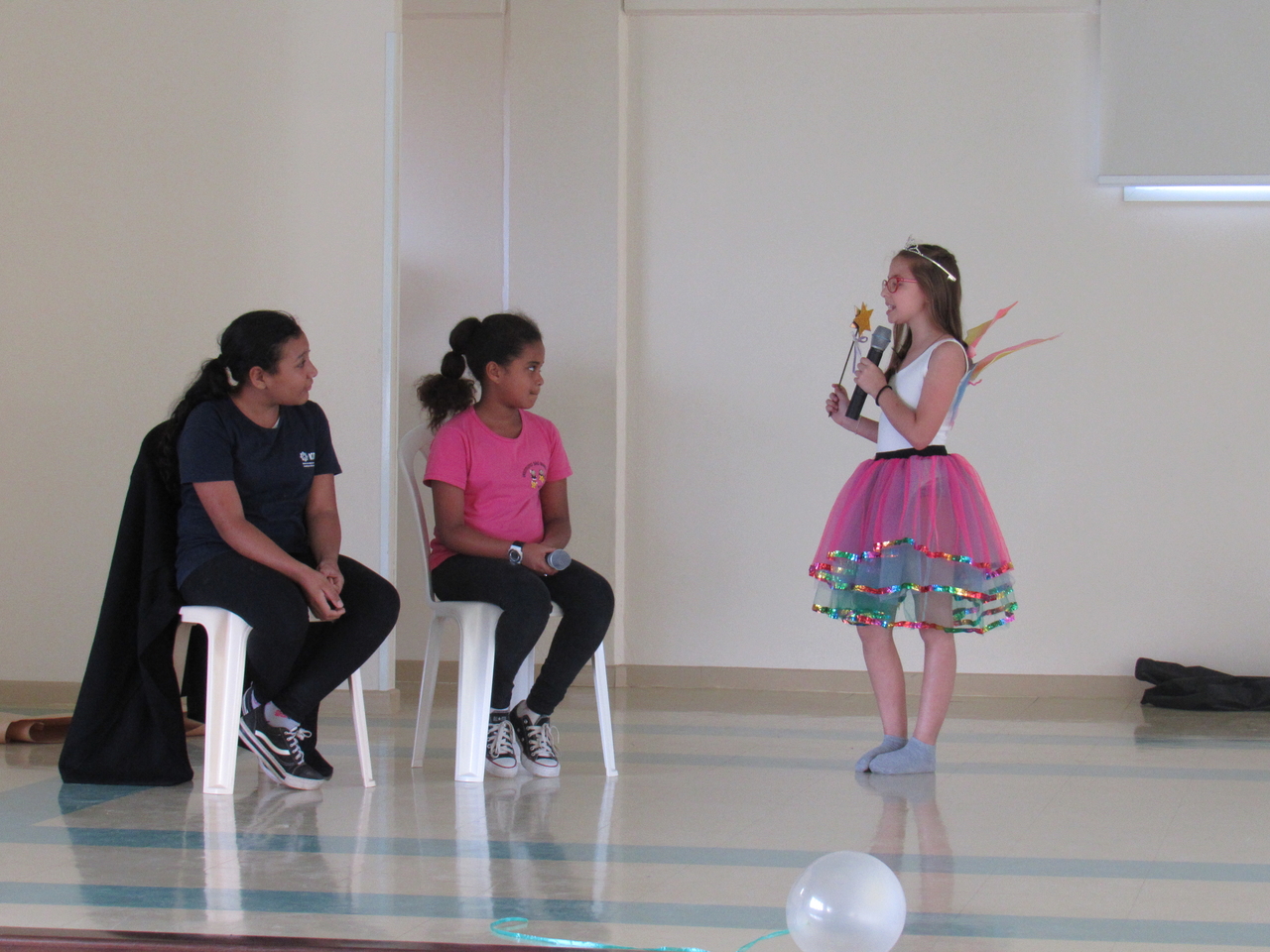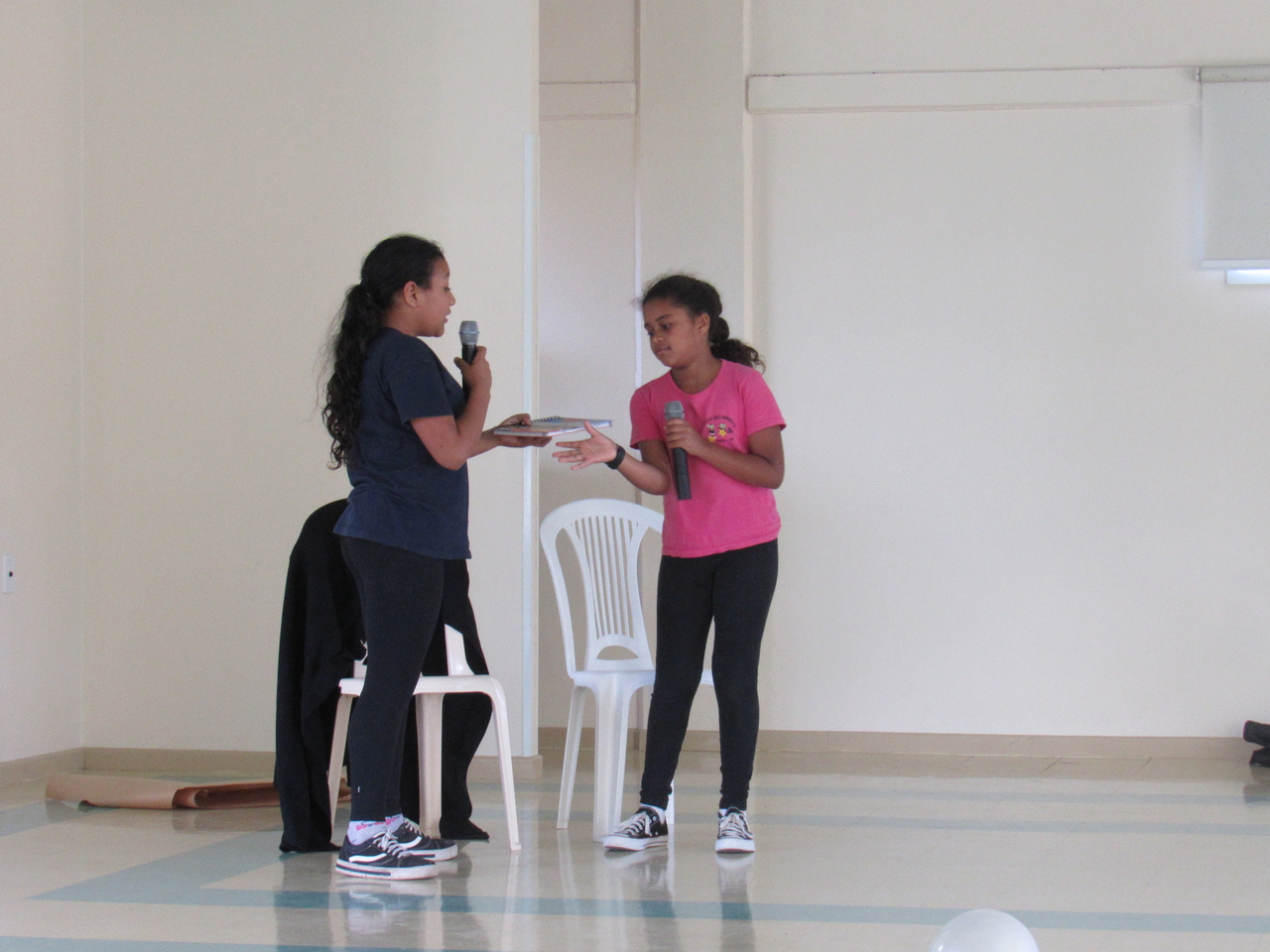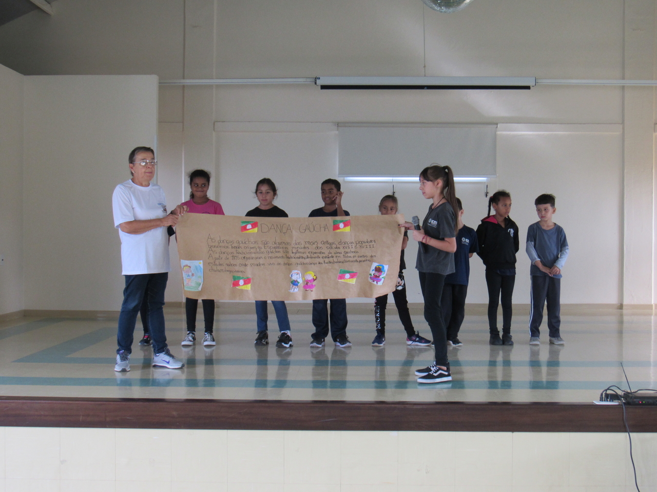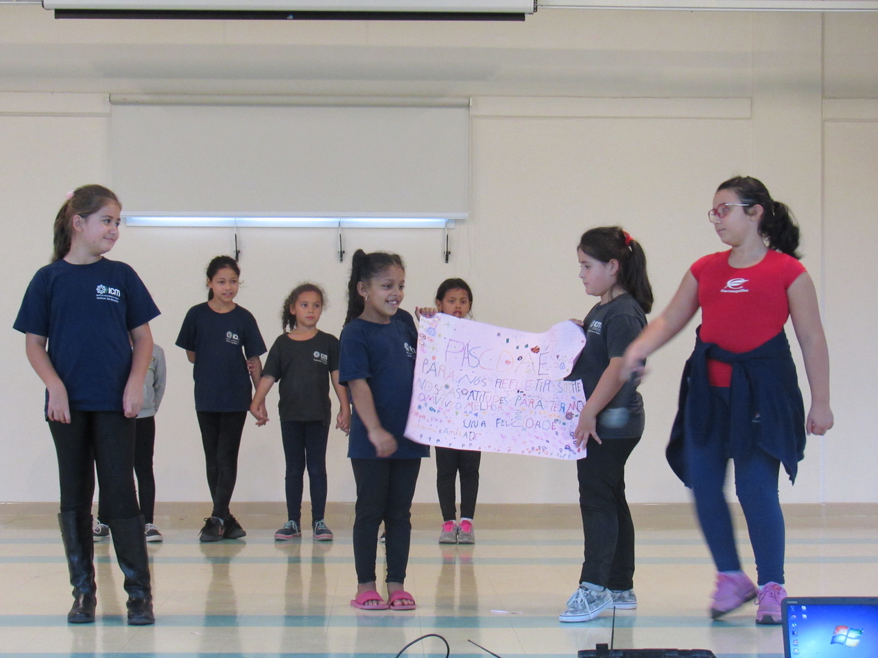 Cada equipe montou um tipo de apresentação, algumas em forma de desenho, outras em peça de teatro, e também teve o grupo de dança.