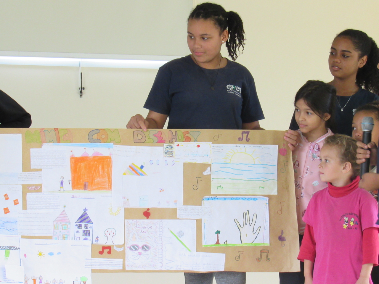 A oficina foi feita durante as sextas-feiras com as crianças do Instituto São Benedito, as educadoras tinham cada uma um grupo e juntos deveriam montar uma atividade para que depois pudessem apresentar.