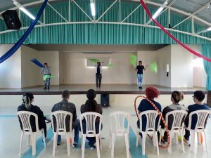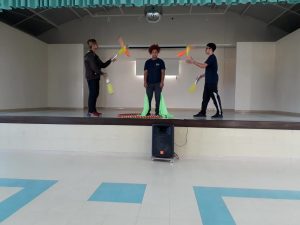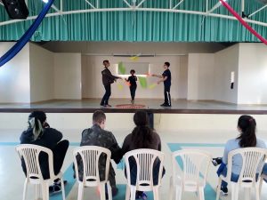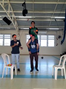 Nesta atividade os grupos tiveram a tarefa de criar gags (números circenses), utilizando as técnicas desenvolvidas durante a oficina ao longo do ano. Após terem elaborado seus números apresentaram para o grupo.