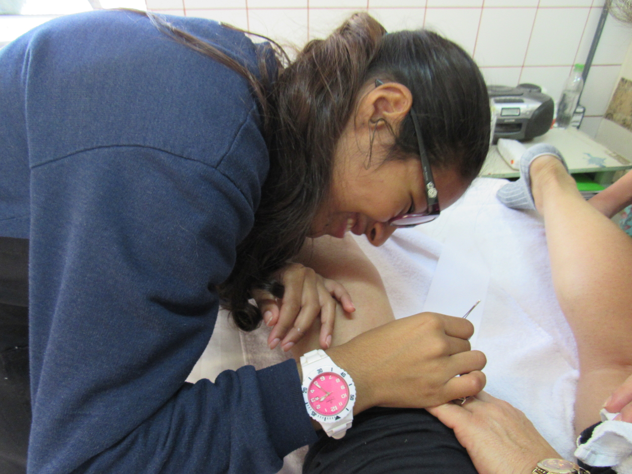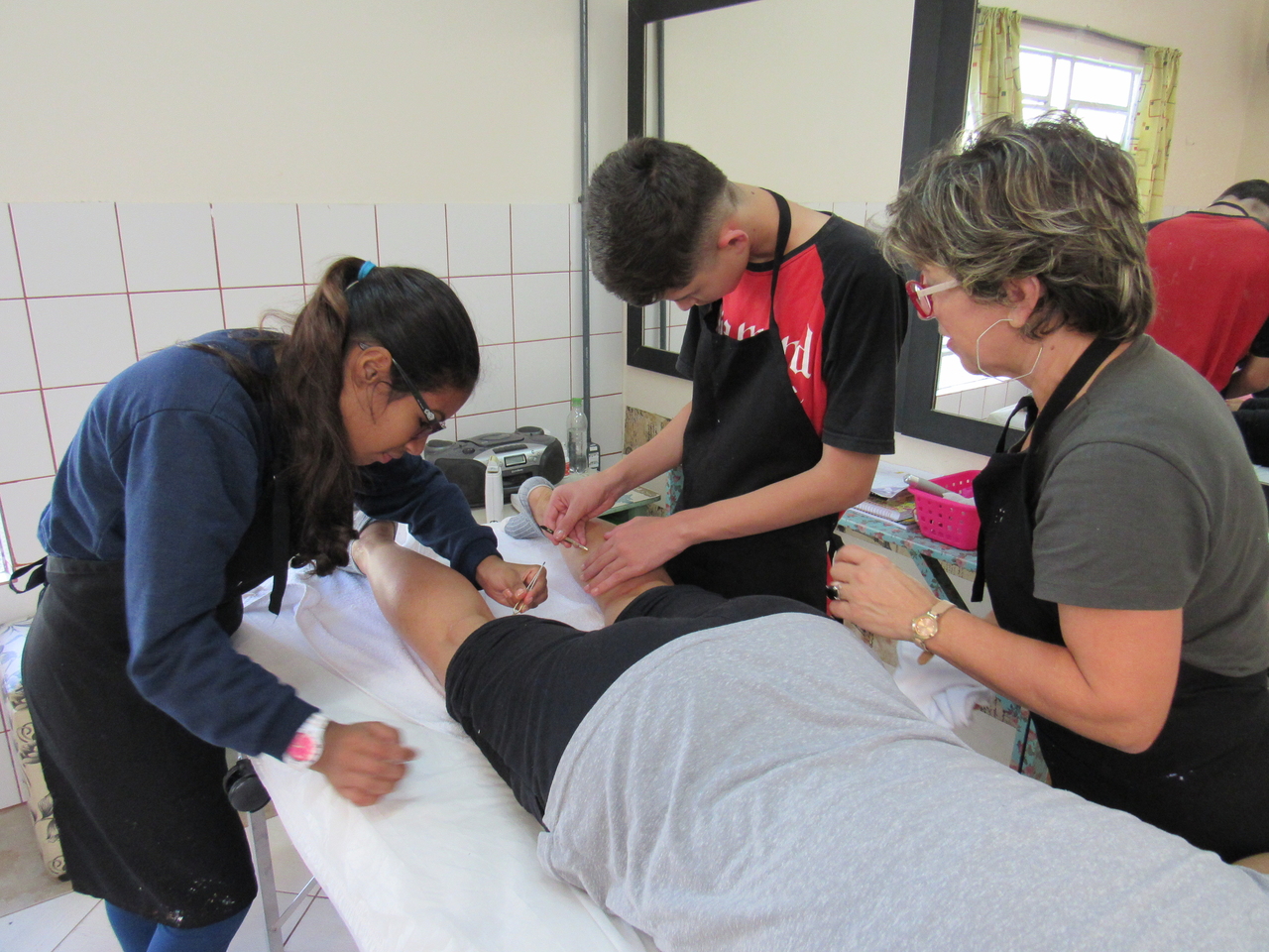 Ontem na modalidade de Embelezamento todos treinaram as técnicas de depilação com o auxílio da educadora Ângela.