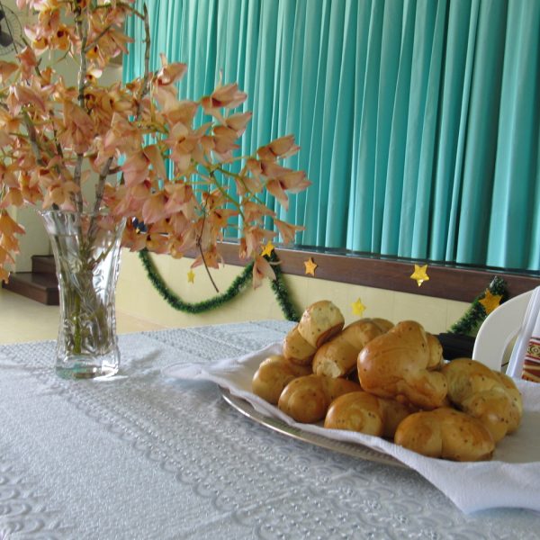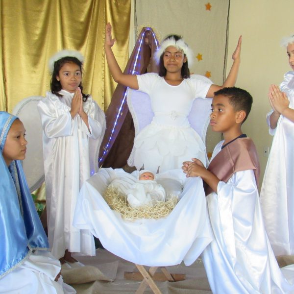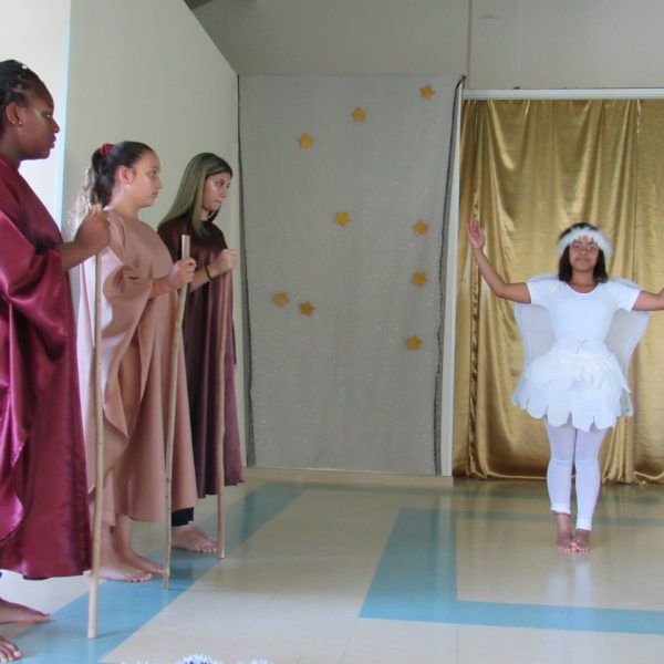 Nossos educandos fizeram uma belíssima encenação sobre o nascimento de Jesus, deixando á todos emocionado. Após, tivemos o momento de partilha do pão abençoado, com cantos e louvores todos juntos rezaram e celebraram.