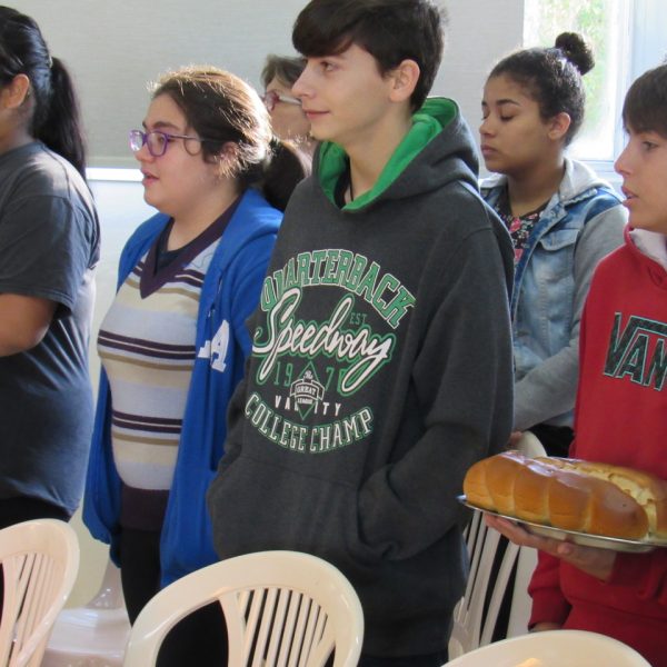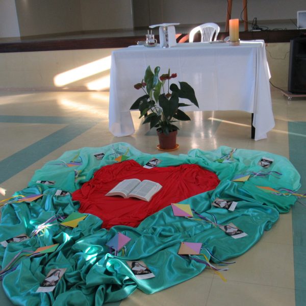 Finalizando a eucaristia os jovens trouxeram palavras simbolizando as virtudes de Bárbara Maix, e todos fizeram a partilha do pão no momento de ofertório, como símbolo de partilha.