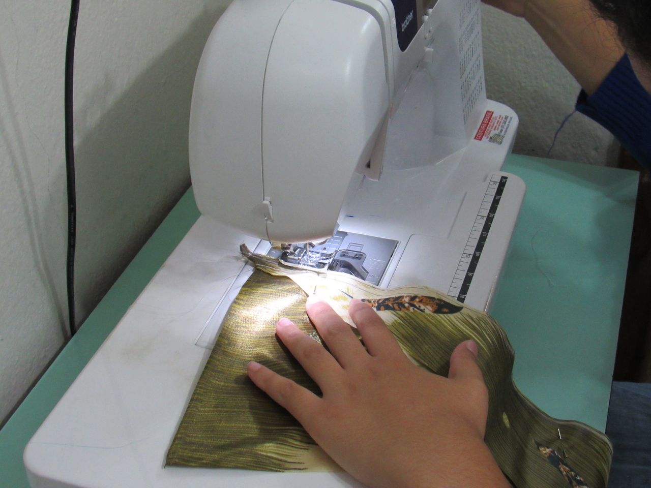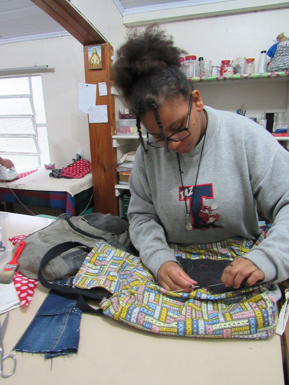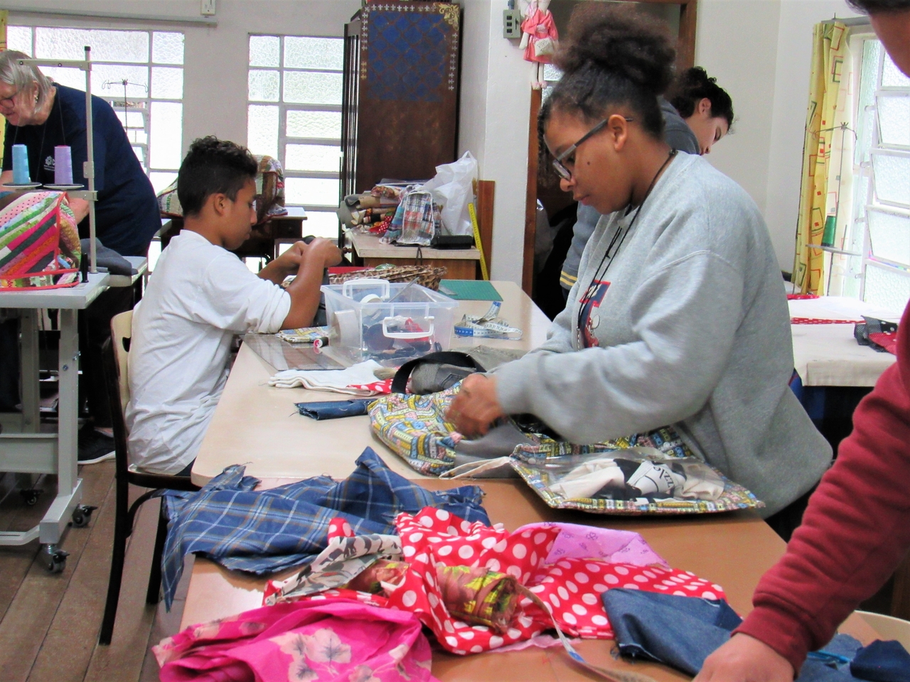 Os jovens da modalidade de Customização aprenderam nesta semana juntamente com a educadora Verônica a utilizar a máquina de costura, para poder então realizar a tarefa de criação e customização de mochilas.