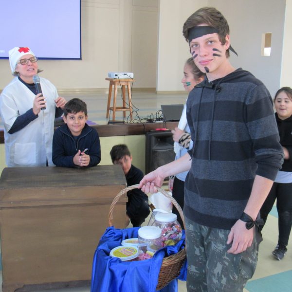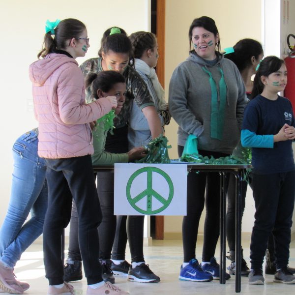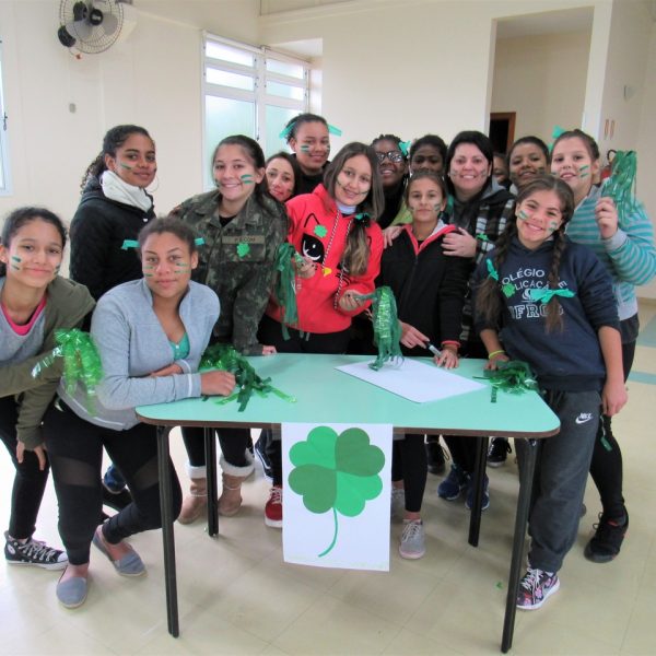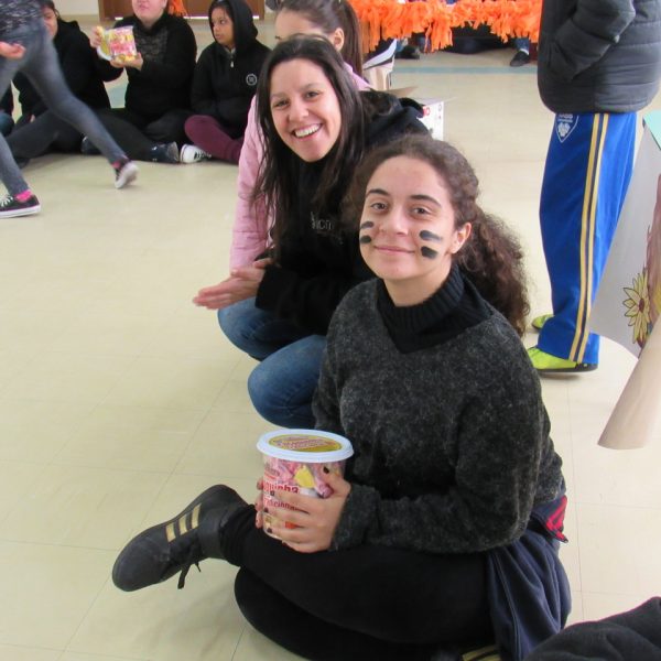 Depois todas as turmas se reuniram no salão da instituição para fazer a gincana, com grito de guerra cada equipe se empenhou para acertar as perguntas referente a vida de Bárbara, no fim os ganhadores dividiram seu prêmio com o grande grupo pois é este tipo de atitude que devemos ter em nossas vidas saber pensar no próximo, ajudar e sempre pensar ao todo como NÓS !