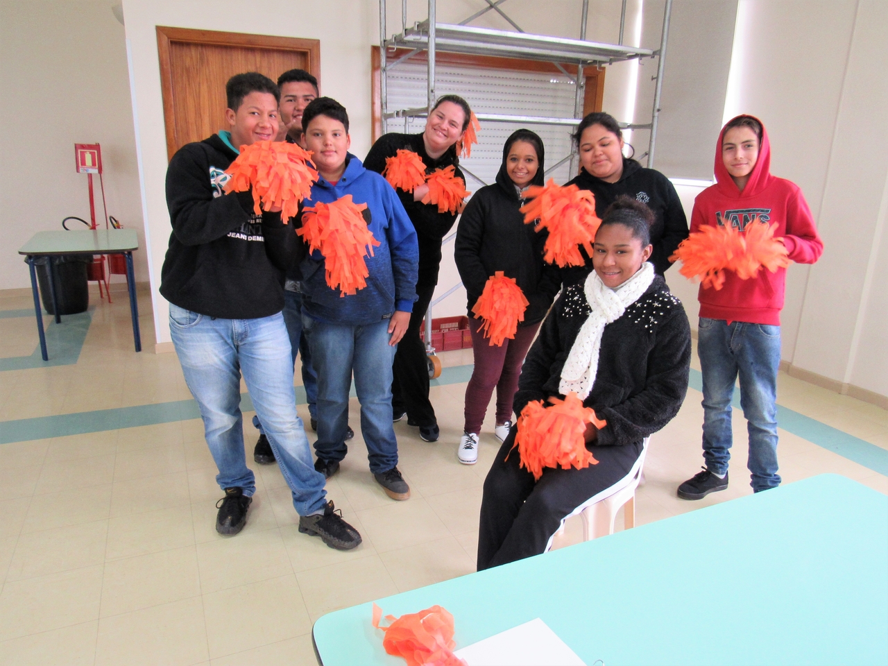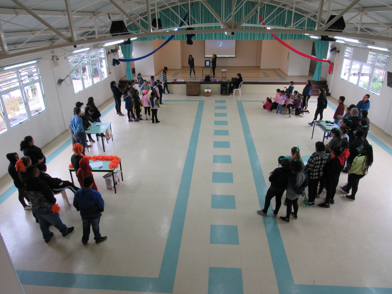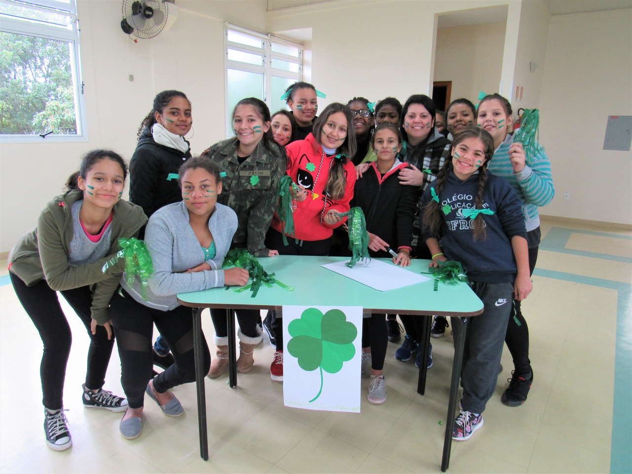 Depois todas as turmas se reuniram no salão da instituição para fazer a gincana, com grito de guerra cada equipe se empenhou para acertar as perguntas referente a vida de Bárbara, no fim os ganhadores dividiram seu prêmio com o grande grupo pois é este tipo de atitude que devemos ter em nossas vidas saber pensar no próximo, ajudar e sempre pensar ao todo como NÓS !