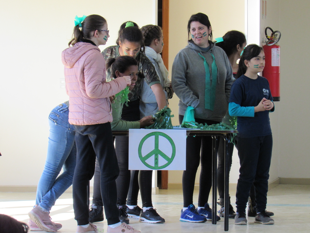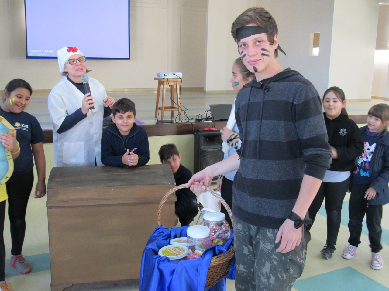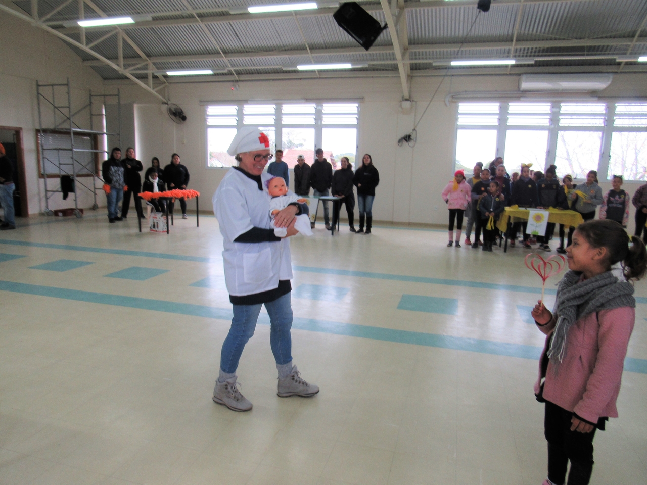 Depois todas as turmas se reuniram no salão da instituição para fazer a gincana, com grito de guerra cada equipe se empenhou para acertar as perguntas referente a vida de Bárbara, no fim os ganhadores dividiram seu prêmio com o grande grupo pois é este tipo de atitude que devemos ter em nossas vidas saber pensar no próximo, ajudar e sempre pensar ao todo como NÓS !