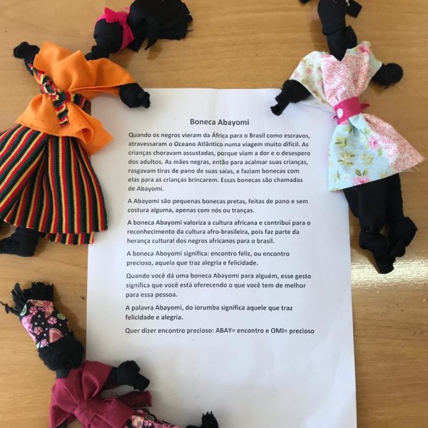 A Abayomi tem como significado “Encontro Precioso” e “Encontro Feliz”, as bonecas Abayomi são pequenas bonecas pretas, feitas de pano e sem nenhuma costura, feitas apenas com nós ou tranças. A boneca Abayomi valoriza a cultura africana e contribui para o reconhecimento da cultura afro-brasileira, pois faz parte da herança cultural dos negros africanos para o Brasil.