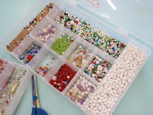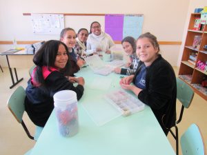 Ontem as adolescentes da Turma C confeccionaram pulseiras feitas com miçangas. Para fazer a criação tiveram disponíveis variedades de miçangas, cada uma criou sua pulseira personalizada, algumas criaram até pulseiras iguais representando a amizade.