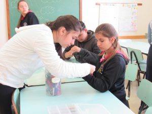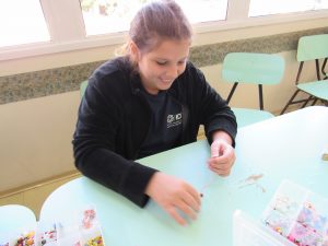 Com atenção e personalidade todas fizeram lindas pulseiras, durante a oficina tiveram o auxílio da educadora Keity que mostrou o passo a passo para a confecção.