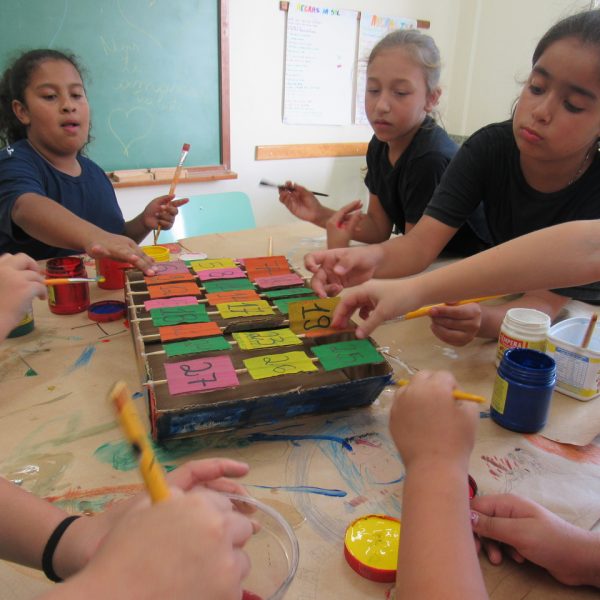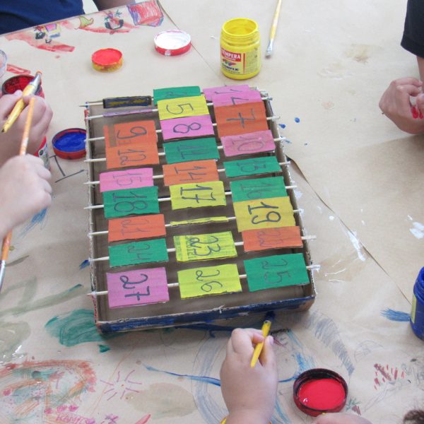 Usaram para a construção do jogo papelão, fotocópia, palito de churrasco e tinta.