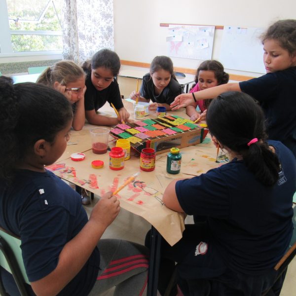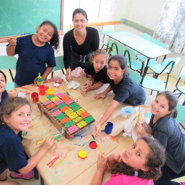 No dia da oficina interativa, a educadora Catiani fez com as meninas da Turma A2 o jogo da memória.