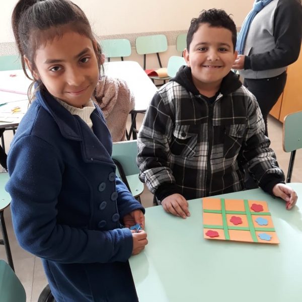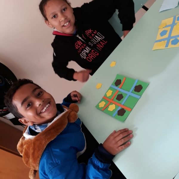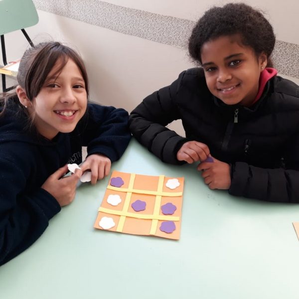 Hoje as crianças da Turma B no turno da manhã, tiveram a Oficina de EVA com a educadora Catiani, todos construíram o jogo da velha com EVA.