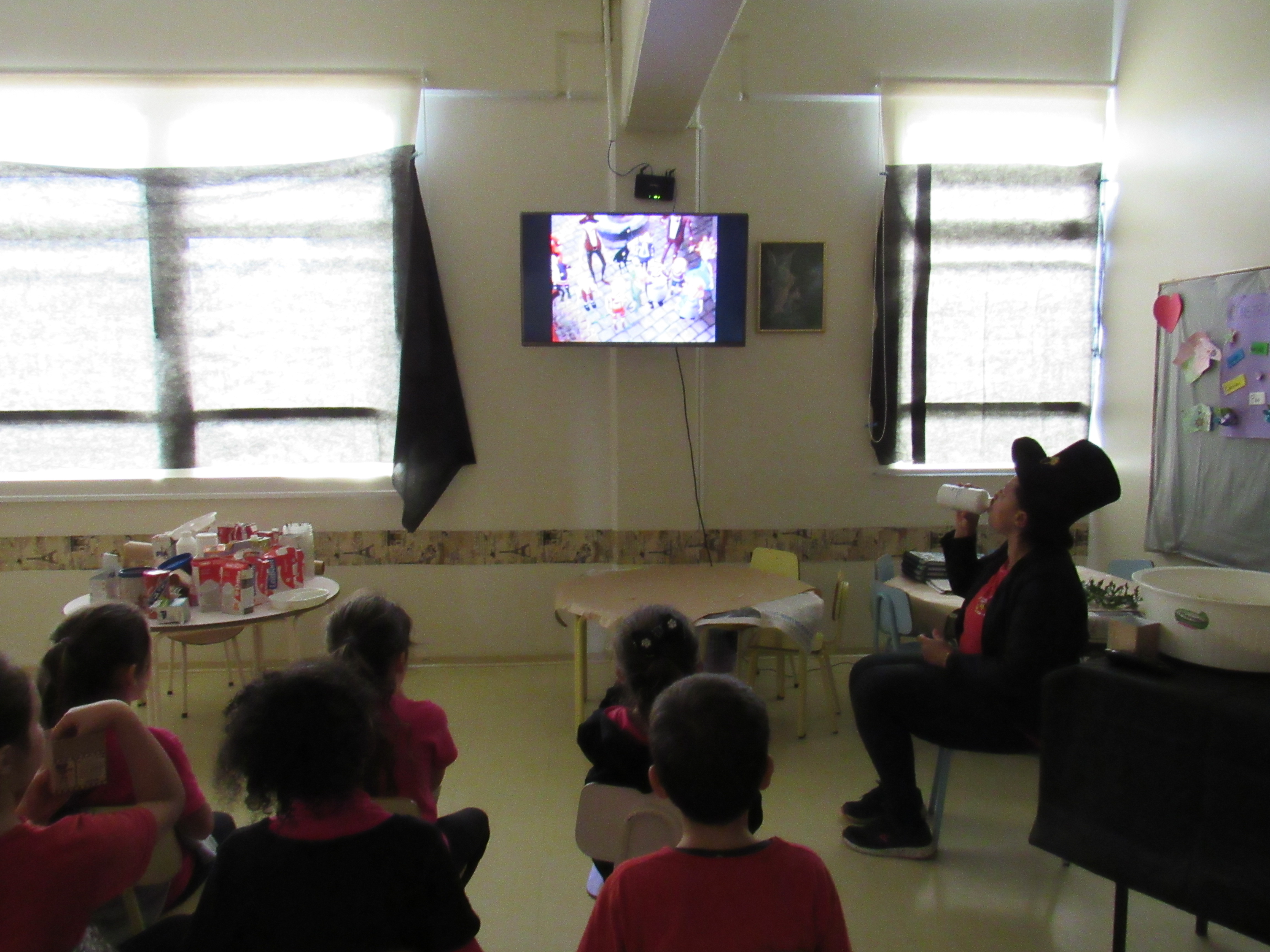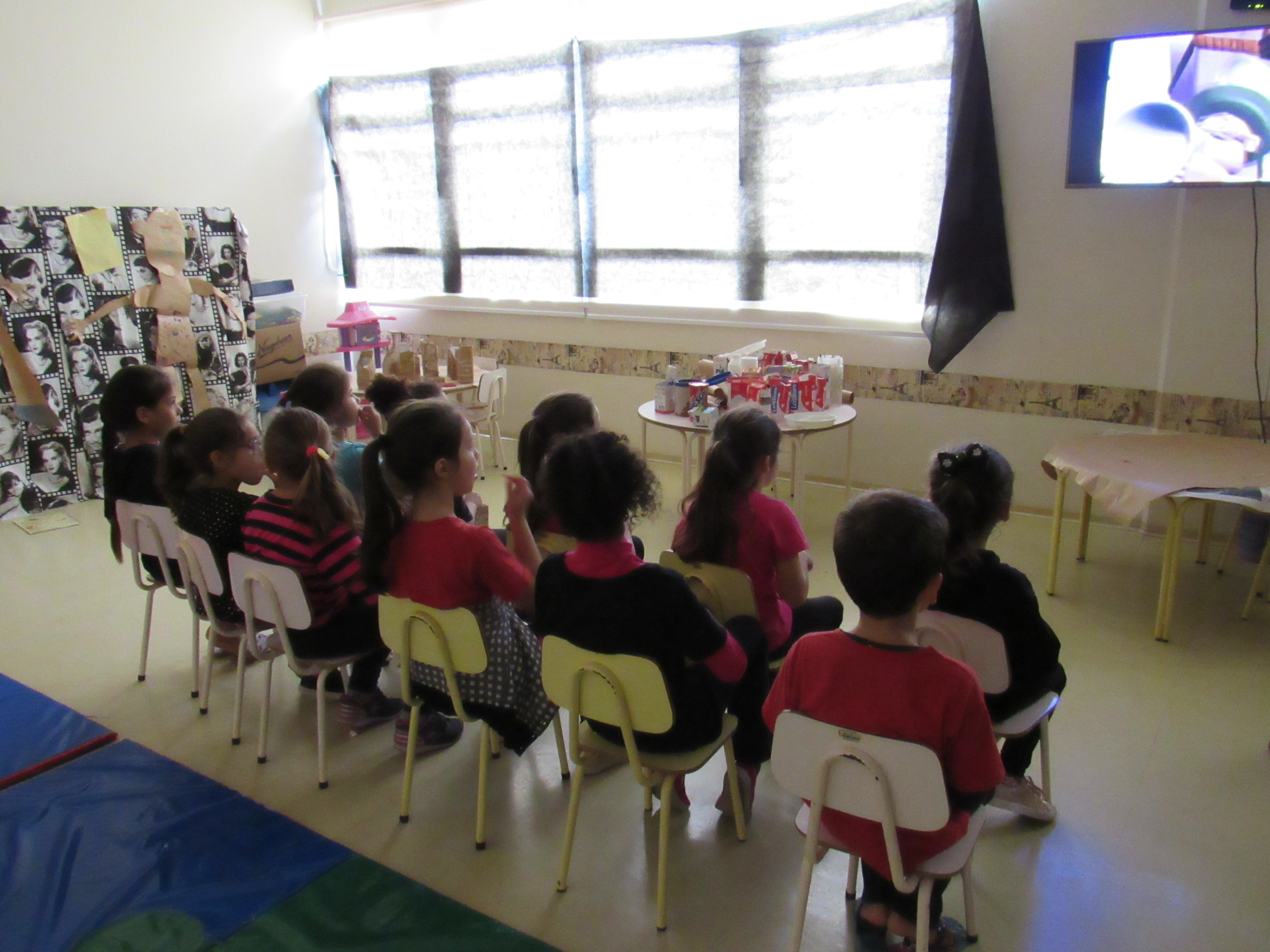 E dando continuidade a oficina de contação de história com as turmas A1, A2m e B2T, as crianças tiveram uma sessão de cinema referente ao livro que estão lendo: Você é especial.
