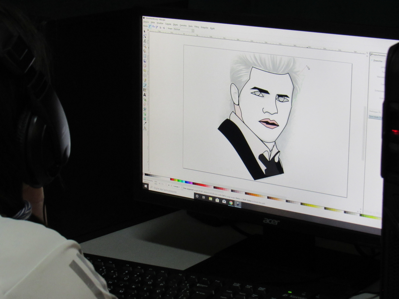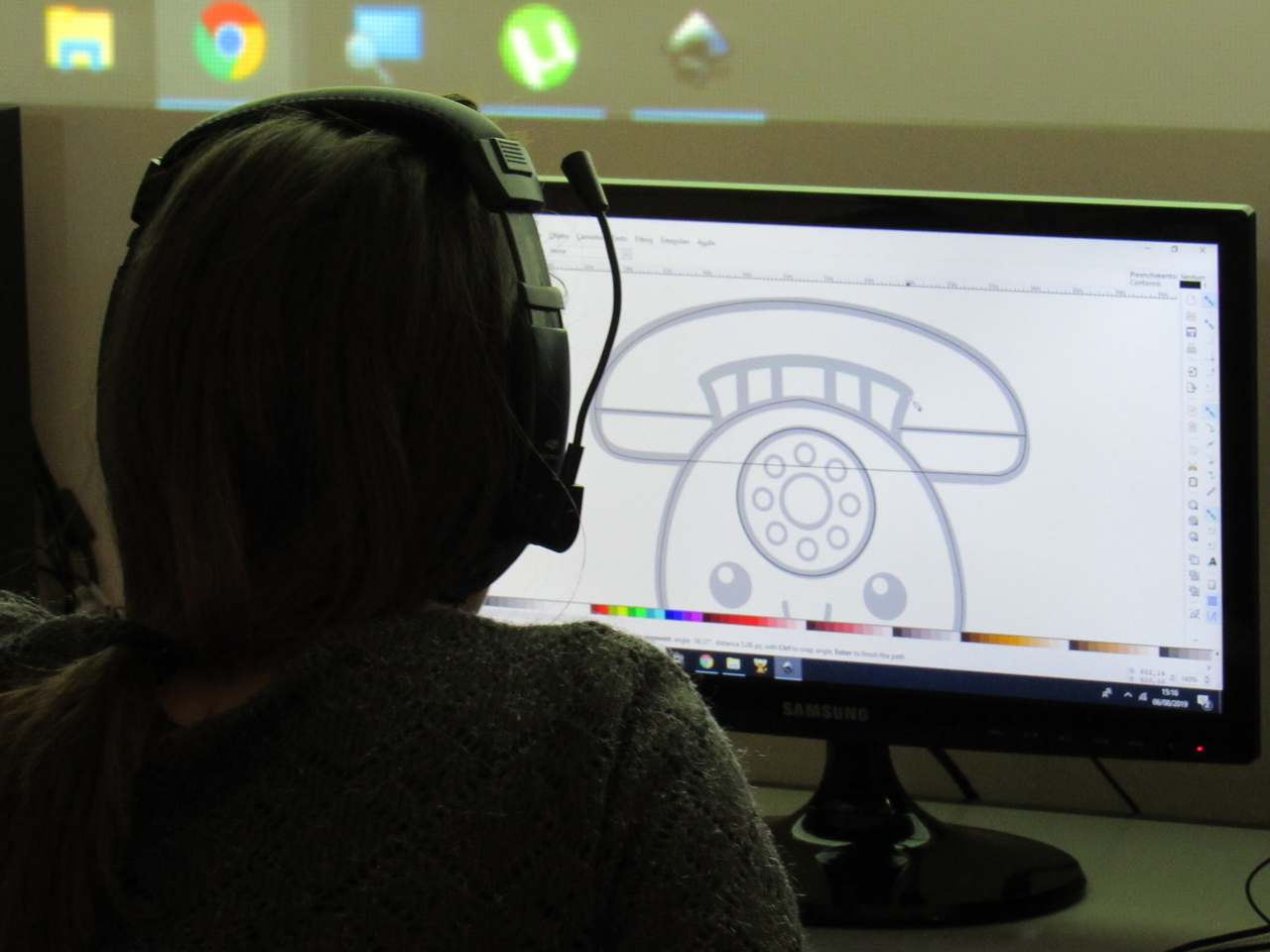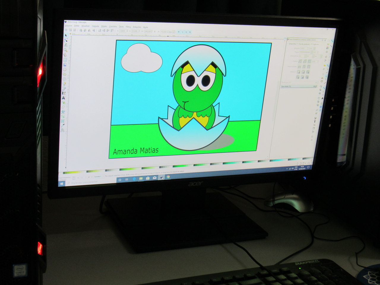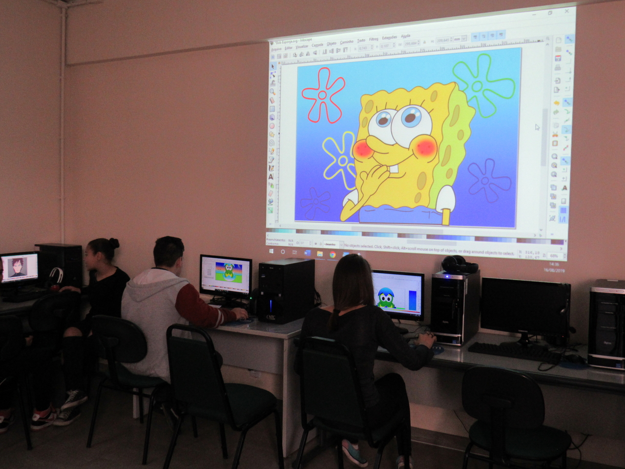 Na modalidade de informática os adolescentes estão aprendendo a fazer criações de imagens no Inkscape vetorização de imagem com o educador Rafael.