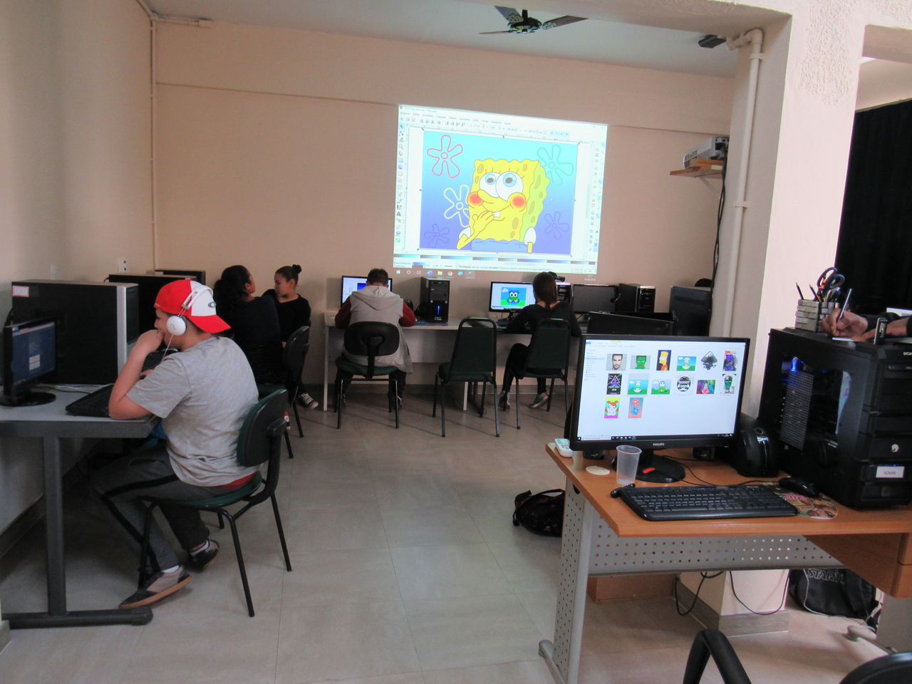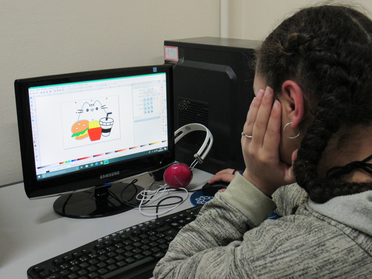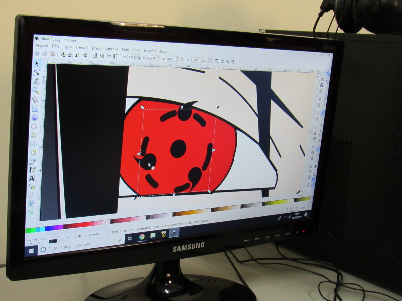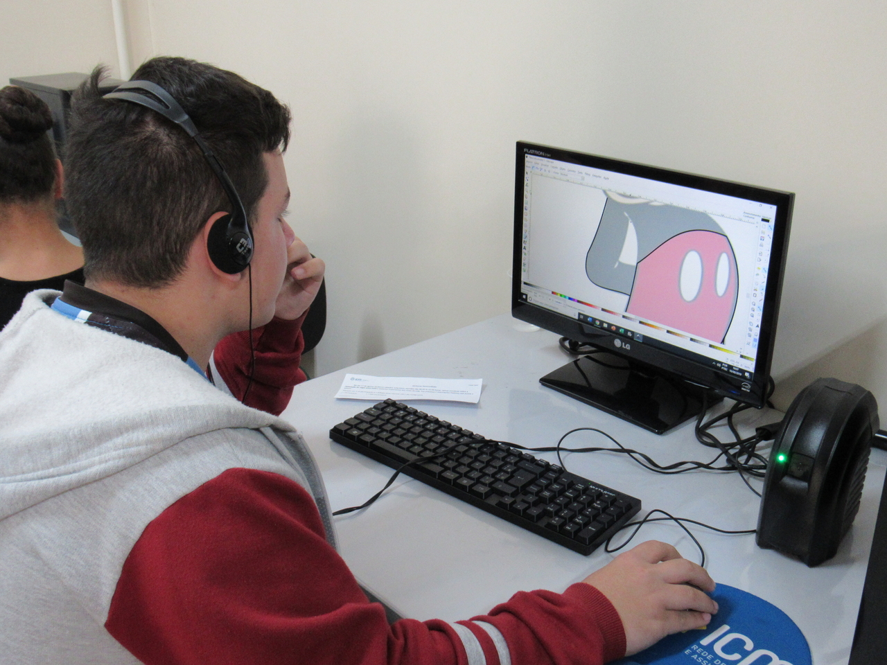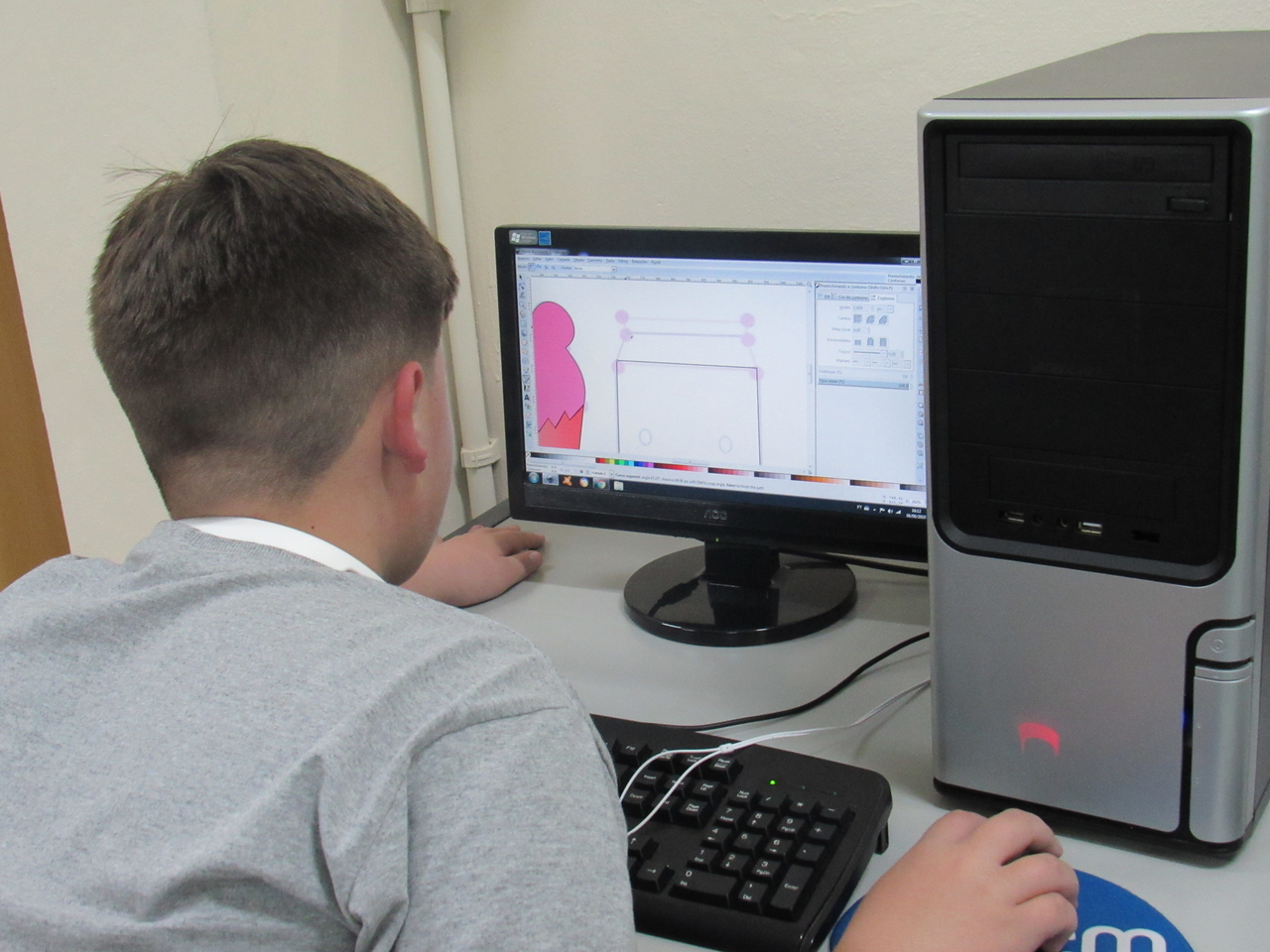 Na modalidade de informática os adolescentes estão aprendendo a fazer criações de imagens no Inkscape vetorização de imagem com o educador Rafael.