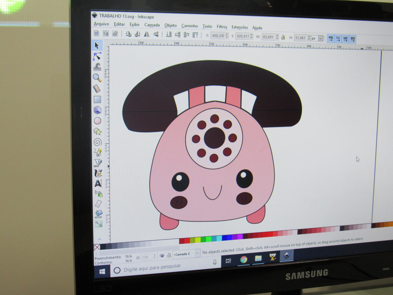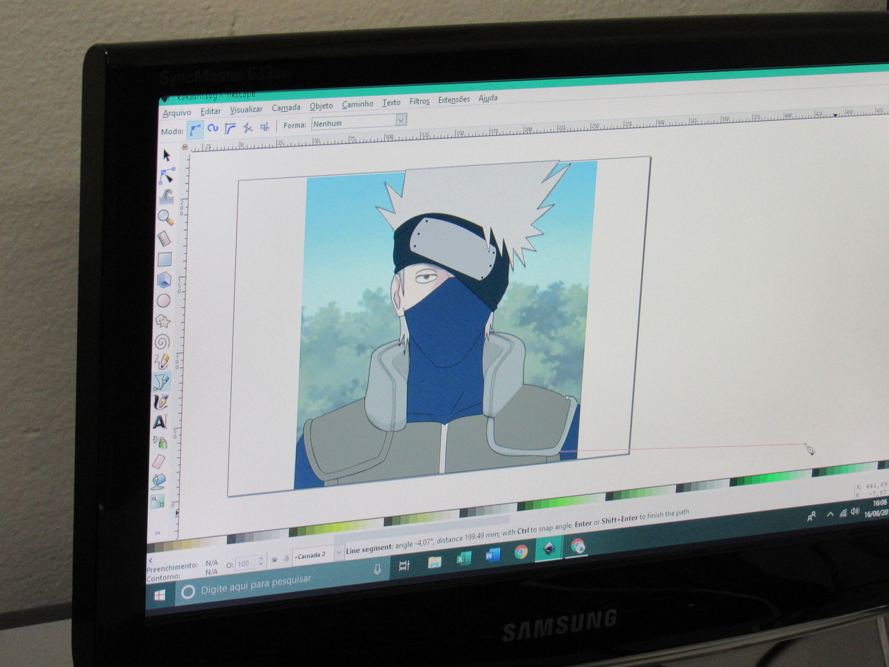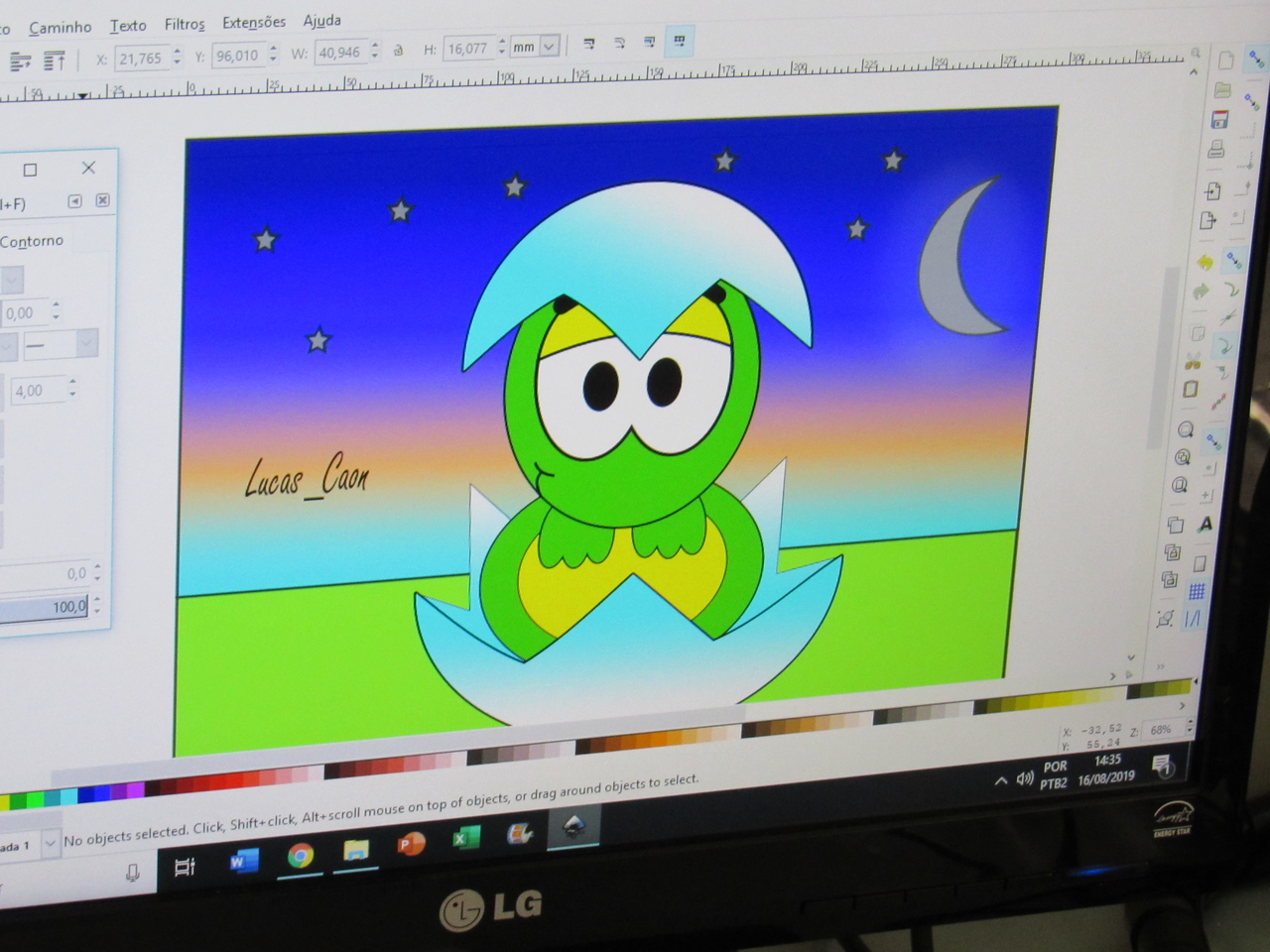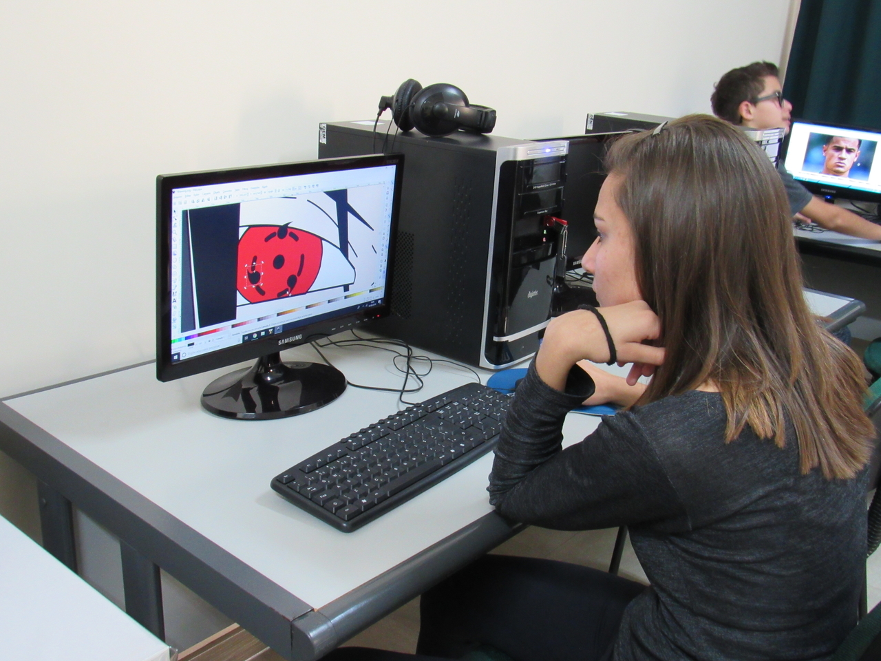 Na modalidade de informática os adolescentes estão aprendendo a fazer criações de imagens no Inkscape vetorização de imagem com o educador Rafael.