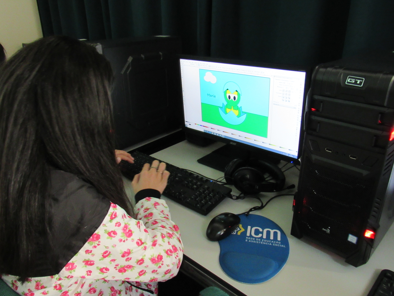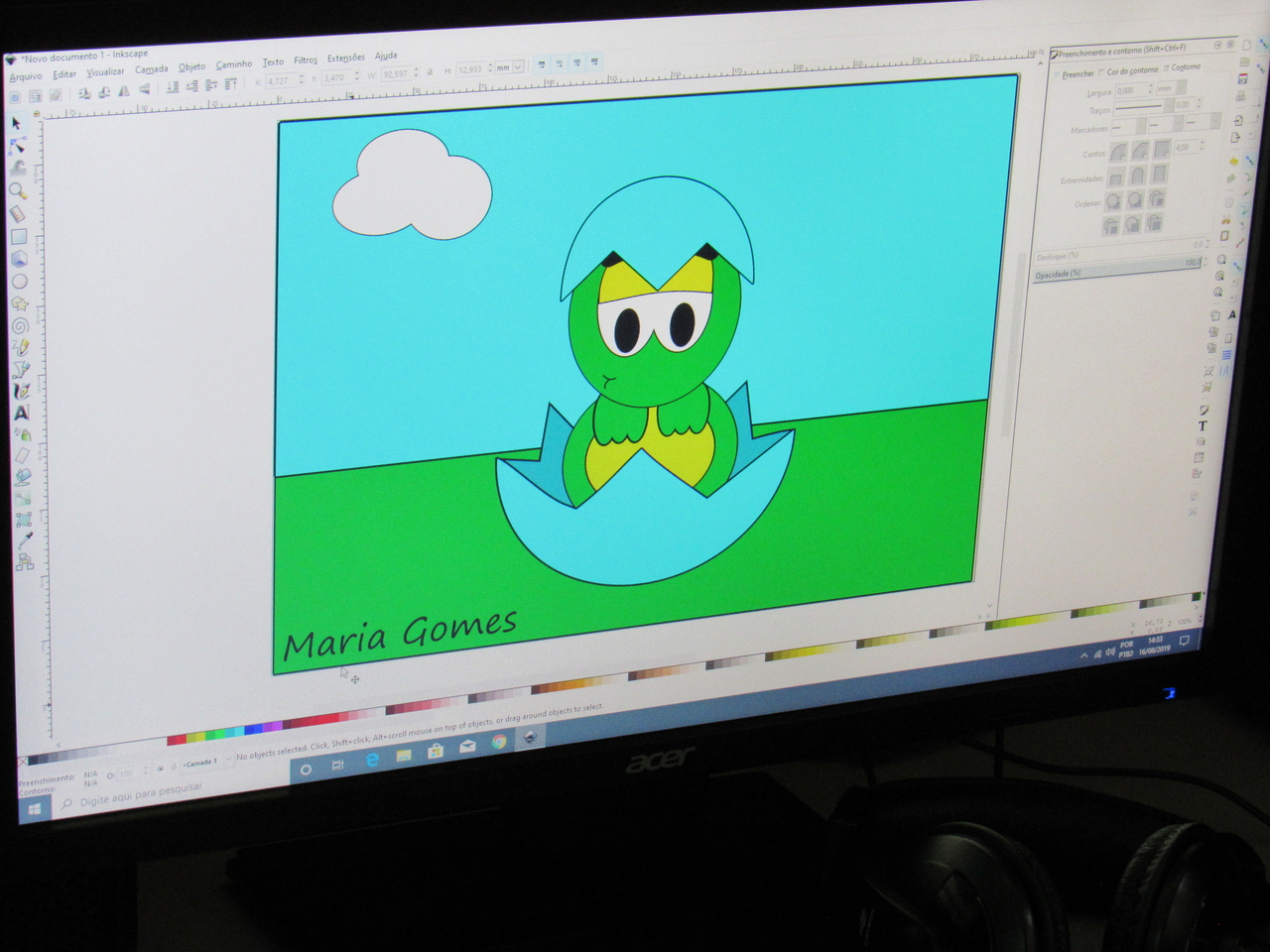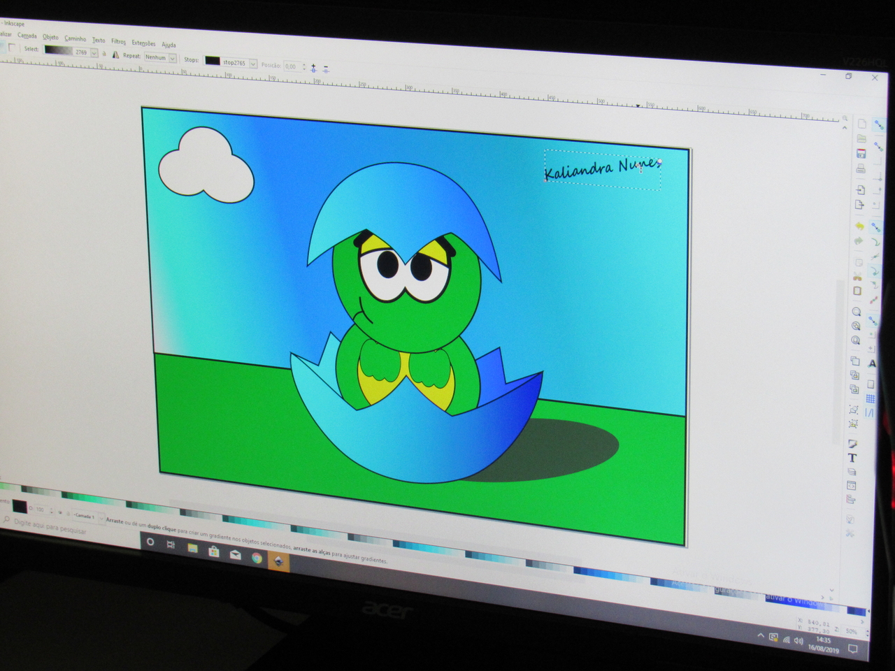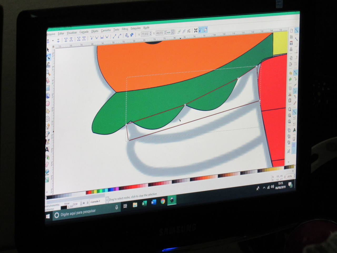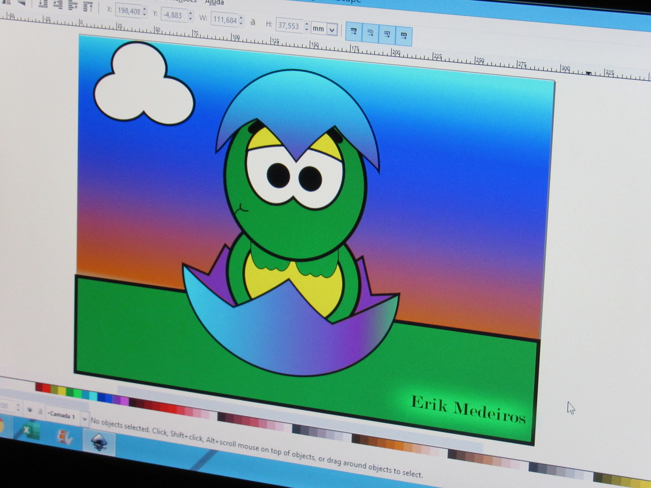 Na modalidade de informática os adolescentes estão aprendendo a fazer criações de imagens no Inkscape vetorização de imagem com o educador Rafael.