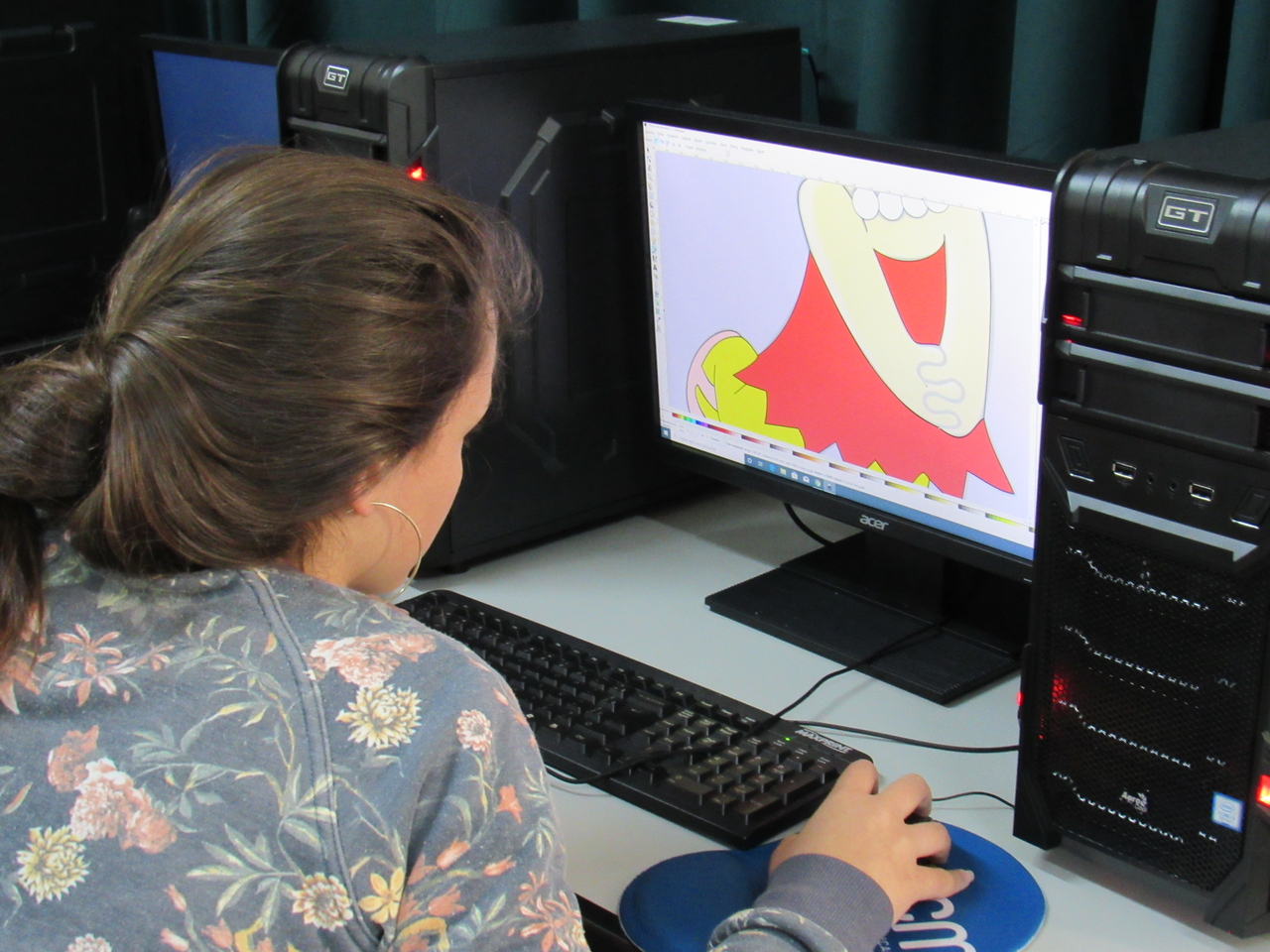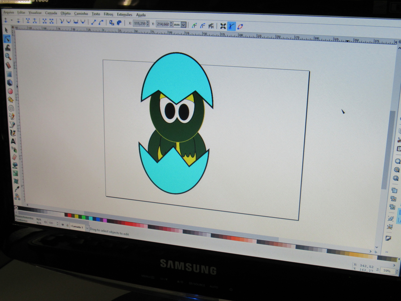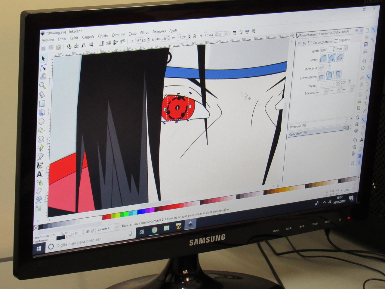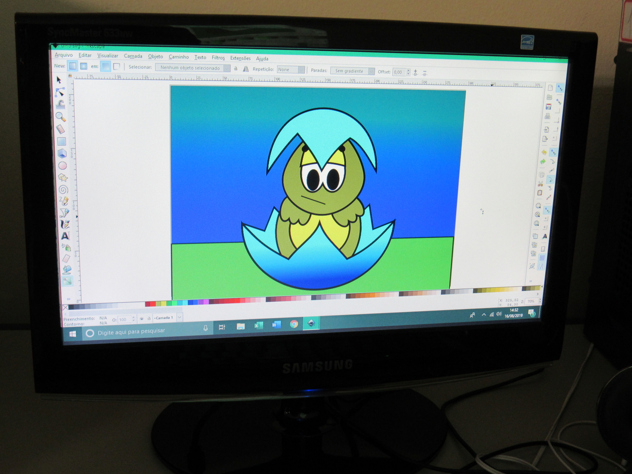 Na modalidade de informática os adolescentes estão aprendendo a fazer criações de imagens no Inkscape vetorização de imagem com o educador Rafael.