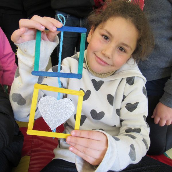 Neste dia as Turmas A, B e C se juntaram para criar um móbile de fotos. Para fazer a montagem utilizaram palitos de picolé, tinta, barbante e cola quente, cada um enfeitou e pintou conforme sua preferência, fizeram o passo a passo com o auxílio das educadoras Ana Paula, Daniela, Vitória, Catiani, Beatriz e Keity.