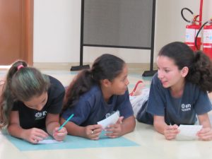 Iniciamos nossa quinta-feira assistindo alguns vídeos sobre higiene e saúde, cuidados para evitar os piolhos, cuidados durante o verão, cuidados diários, materiais necessários para entrar na piscina, e outros assuntos que foram surgindo, importantes para a boa convivência e para as vidas das crianças e adolescentes. Após, organizamos um “Quiz”, com perguntas e respostas, onde as equipes formadas deveriam responder corretamente às perguntas…