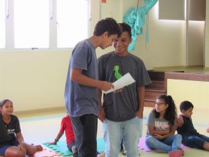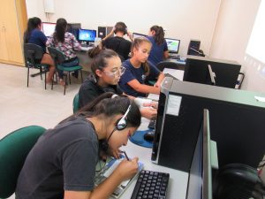 Os adolescentes do Instituto São Benedito fizeram uma pesquisa na sala de informática para buscar curiosidades sobre o Carnaval como vestimenta, maquiagem e como era o Carnaval antigo. Após a pesquisa, todos se reuniram no salão e apresentaram as curiosidades para o grande grupo de crianças e adolescentes.