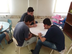 Atividade integrada com o grupo do Trabalho Educativo tendo como facilitadores os educadores Joana e Ângelo. O grupo assistiu ao documentário Frutos do Brasil, logo fizeram um debate sobre o mesmo abordando temas como: educação, saúde, distribuição de renda, moradia dentre outras questões relacionadas à cidadania.