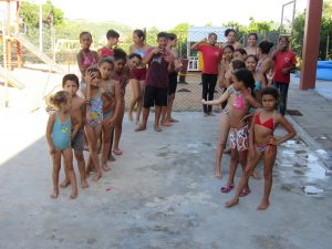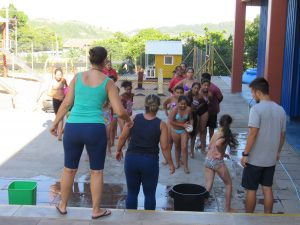 Muitas brincadeiras nessa segunda-feira… As crianças e adolescentes brincaram de passa ou repassa com a água da piscina, além disso brincaram de passar o copo com água, em uma atividade de equipe, com ajuda, cooperação e trabalho em grupo…