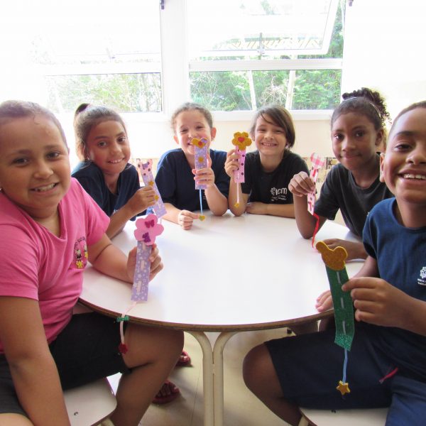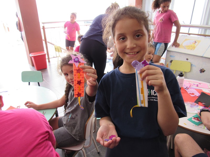 Ontem foi dia de atividade com EVA, todos se ajudando e dando o seu melhor para fazer um lindo marca página…