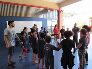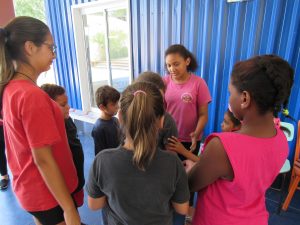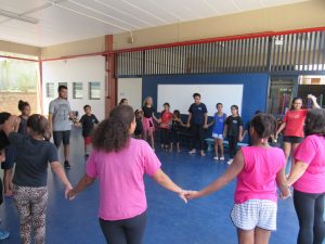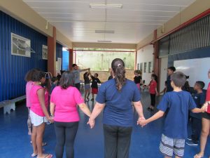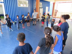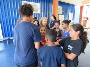 Neste dia foi feita algumas dinâmicas em grupo, as crianças e adolescentes tiveram que ter colaboração para juntos fazer a resolução de enigma em equipe.