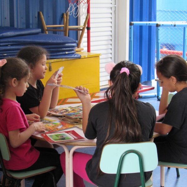 Cada dia proporcionamos espaços e atividades para as crianças interagirem e passarem esse tempo enquanto aguardam o momento de ir para a escola.