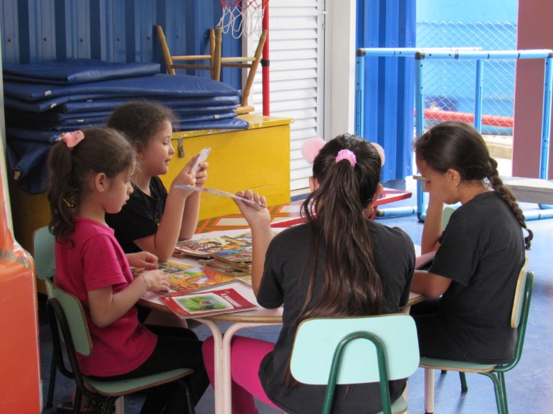 Cada dia proporcionamos espaços e atividades para as crianças interagirem e passarem esse tempo enquanto aguardam o momento de ir para a escola.