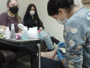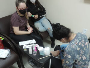 Nesta atividade a turma do Embelezamento aprendeu técnicas de pedicure, (higiene, corte e pintura), atividade esta que desenvolve a concentração, o cuidado e a atenção, além de estimular a criatividade através da pintura das unhas. Este aprendizado extrapola os muros da Instituição, uma vez que os adolescentes podem desenvolver as técnicas aprendidas para promover o autocuidado, podendo também aplicar as técnicas com os membros da própria família, tendo também um repertório que poderá servir como ferramenta para geração de renda futura. Veja abaixo algumas imagens da atividade proposta.