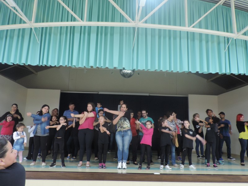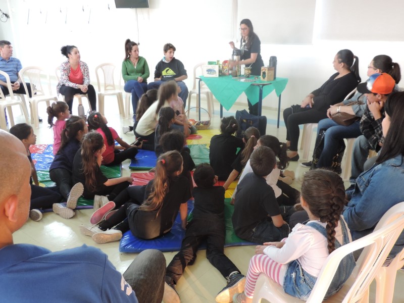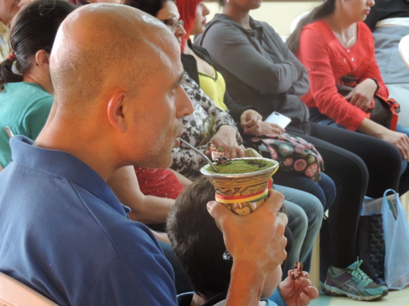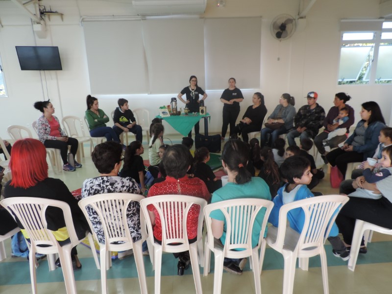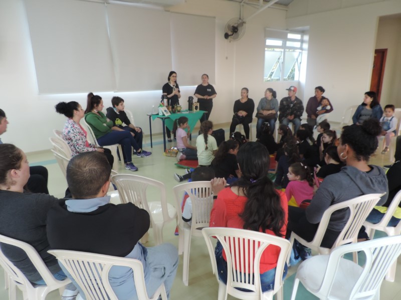 Momento de integração e socialização com as famílias da turma A, manhã e tarde. Contou-se a história do chimarrão, fazendo uma roda de mate depois, e um momento especial onde as famílias foram convidadas a dançar com as crianças.