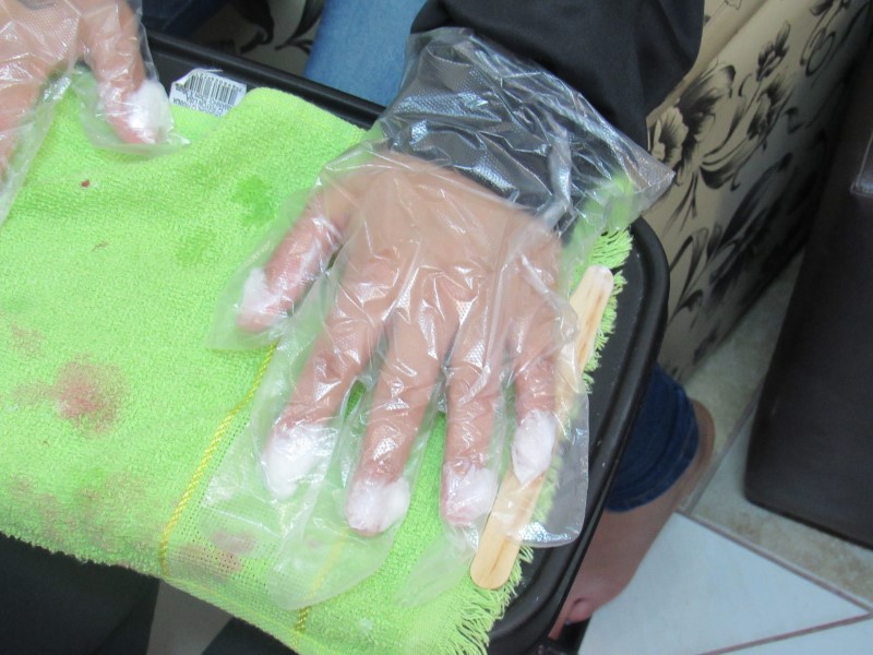 A educadora Ângela ensinou o passo a passo, agora todos já estão tirando as cutículas, esmaltando as unhas e também colocam algumas películas decorativas.