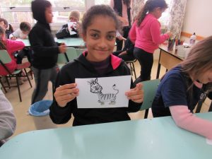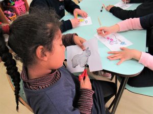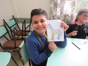 Depois de aprender as espécie dos animais, cada um escolheu um dos desenhos impressos para poder colorir. Resultaram em lindas pinturas!