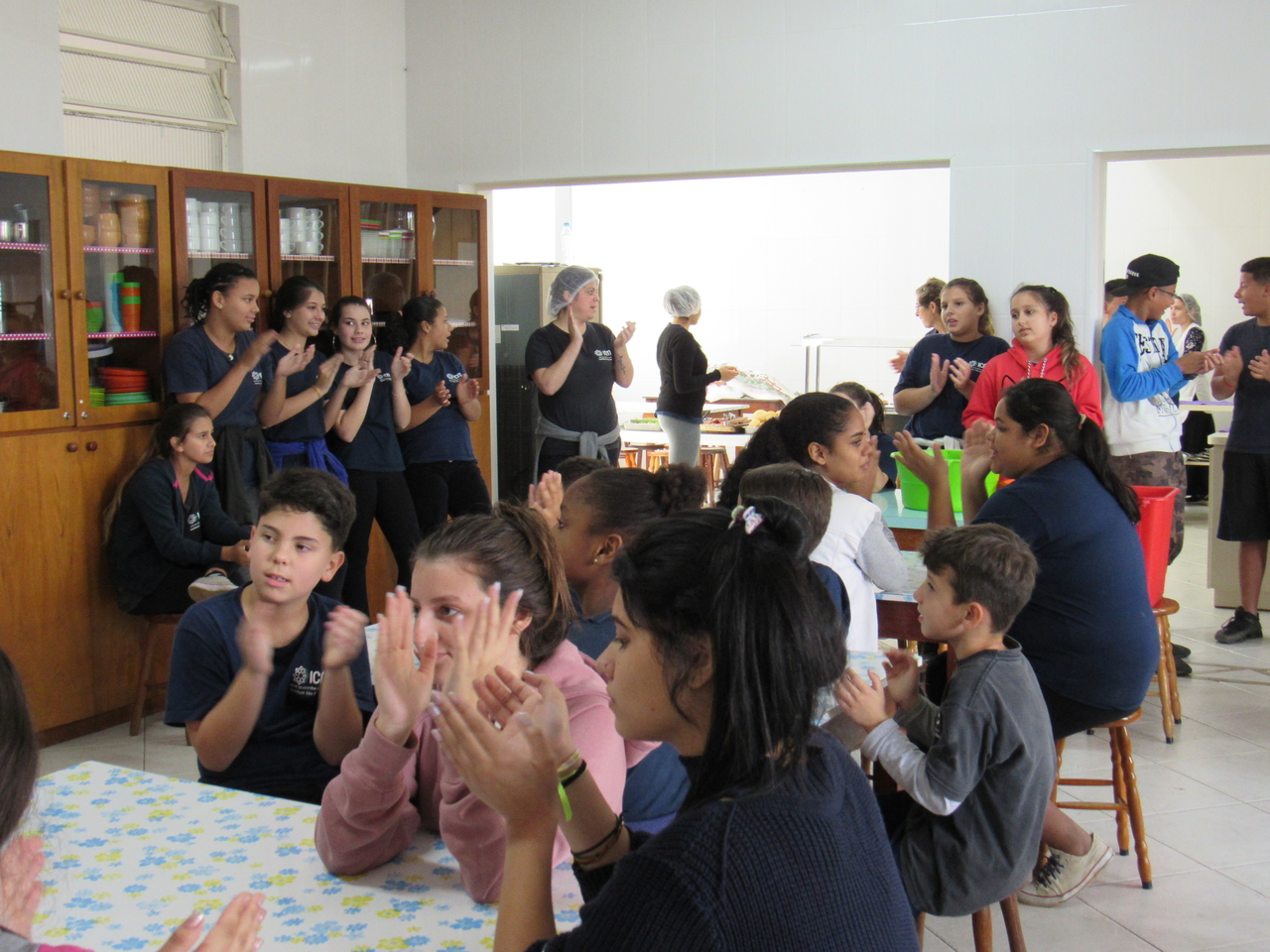 Prestigiando os aniversariantes na hora do parabéns, todos juntos celebraram desejando boas energias para os colegas. Todos tiveram um lanche e almoço especial recheado de gostosuras!
