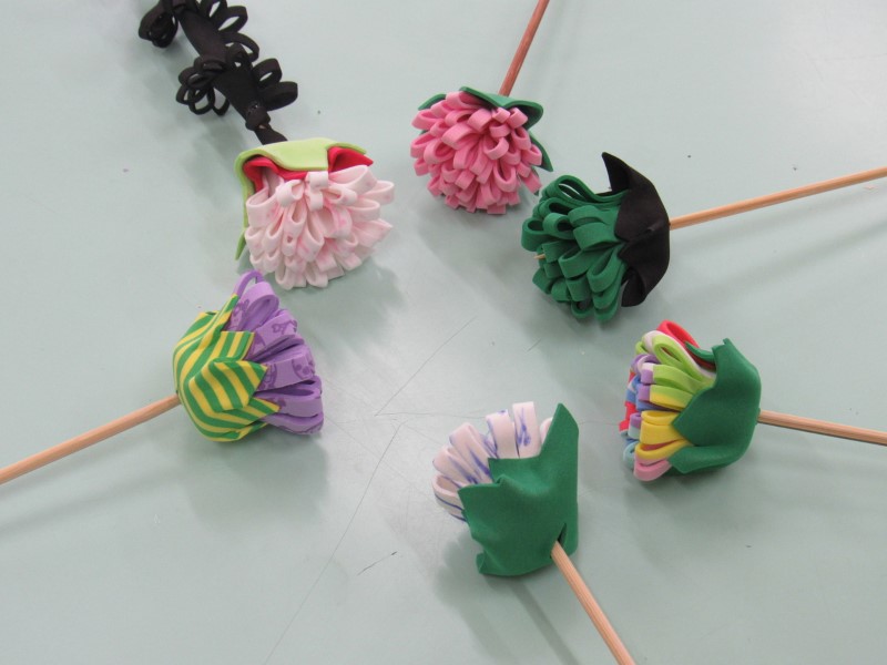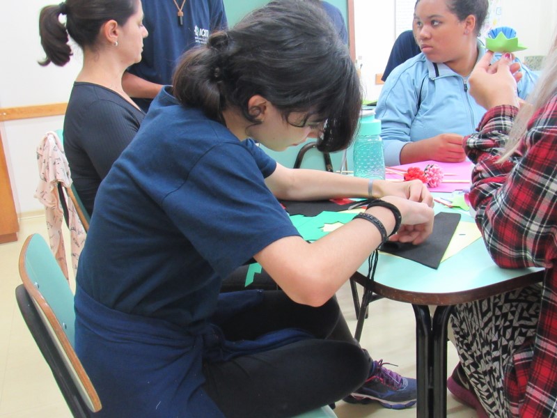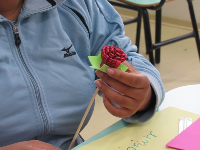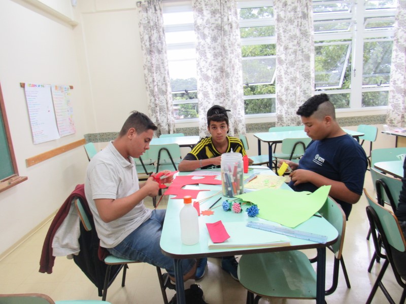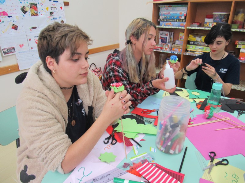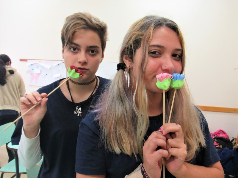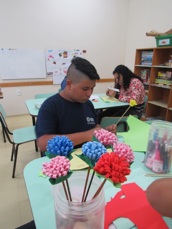 Os jovens fizeram muitas flores de diferentes cores, cada uma de sua preferência e personalizado do seu jeito. Eles levaram para casa para que pudessem presentear alguém especial.