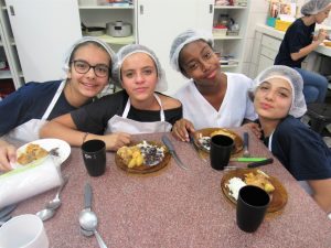 Os jovens nesta semana aprenderam alguns cardápios de comida com a educadora Kátia. Primeiro cardápio foi feito arroz, feijão, omelete de presunto com queijo ralado. Segundo cardápio foi feito arroz, feijão, galinha feita na panela de pressão, batata na manteiga e acompanhamento de saladas colhidas na horta da instituição.