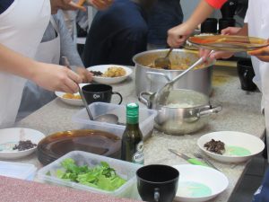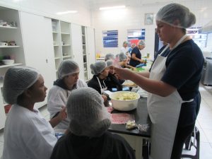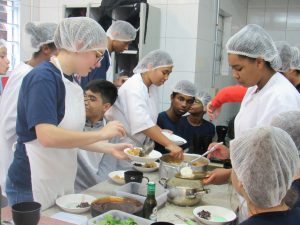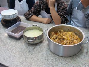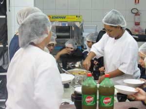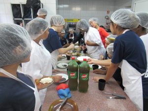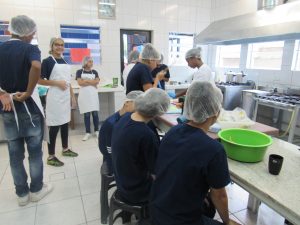 Os jovens nesta semana aprenderam alguns cardápios de comida com a educadora Kátia. Primeiro cardápio foi feito arroz, feijão, omelete de presunto com queijo ralado. Segundo cardápio foi feito arroz, feijão, galinha feita na panela de pressão, batata na manteiga e acompanhamento de saladas colhidas na horta da instituição.